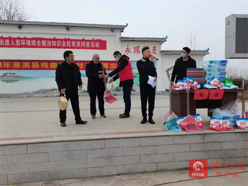 12月8日下午,淮滨县桂花街道在新村社区文化广场举行了一场人居环境综合整治有奖问答活动,大家踊跃抢答,现场氛围浓厚。在有奖问答活动间隙,该县文广新局演出队、新村社区舞狮队和秧歌旱船队为群众表演精彩节目。
