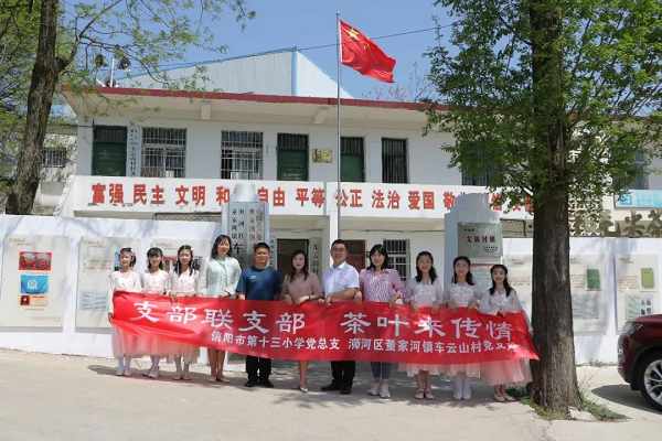 人间最美四月天,迎着春风,伴着新绿,信阳市第十三小学党总支与董家河镇车云山村支部开展机关与村(社区)“支部联支部”活动——支部联支部,茶叶来传情。日前,该校党员教师和少先队员在学校党总支副书记李颖同志的带领下来到了车云山进行活动的启动仪式。信阳市第十三小学作为一所拥有红色历史文化的名校和盛产名茶的车云山党支部结对帮扶,必将促进脱贫攻坚与乡村振兴的有效衔接。
