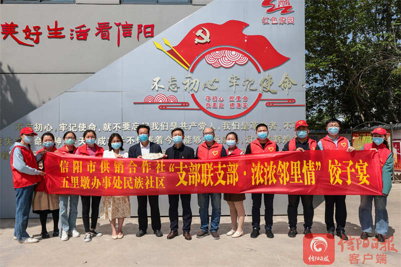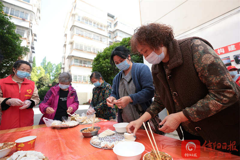 4月21日上午,浉河区民族社区携手“支部联支部”共建单位信阳市供销社,在金桂园小区举办“浓浓邻里情”饺子宴活动。在严格落实各项疫情防控措施的情况下,工作人员邀请小区居民欢聚一堂,包饺子、煮饺子、吃饺子,并上门为空巢老年人送饺子。此次活动让辖区居民感受到了来自社区的温暖和关爱,也拉近了邻里之间的感情,有效地促进了邻里之间的和谐融洽。