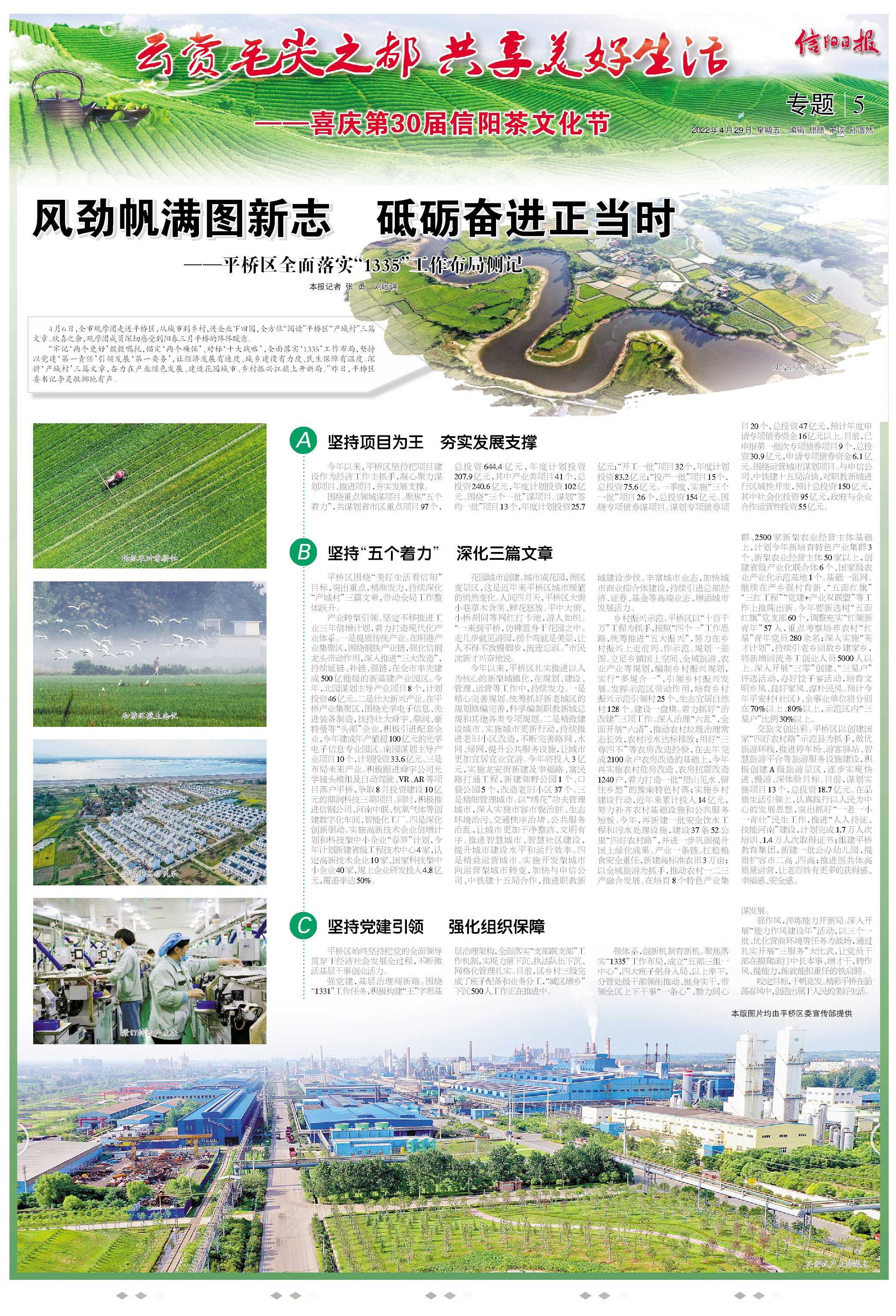 “牢记‘两个更好’殷殷嘱托,锚定‘两个确保’、对标‘十大战略’,全面落实‘1335’工作布局,坚持以党建‘第一责任’引领发展‘第一要务’,让经济发展有速度、城乡建设有力度、民生保障有温度。深耕‘产城村’三篇文章,奋力在产业绿色发展、建造花园城市、乡村振兴扛旗上开新局。”昨日,平桥区委书记李灵敏掷地有声。