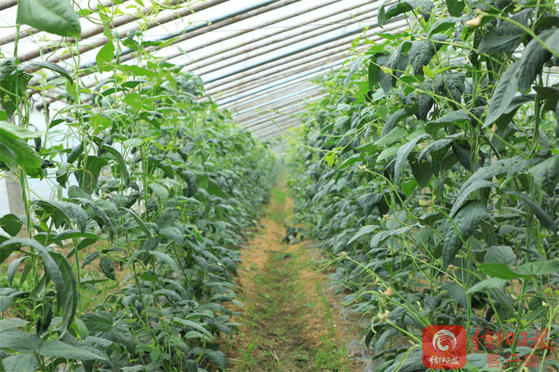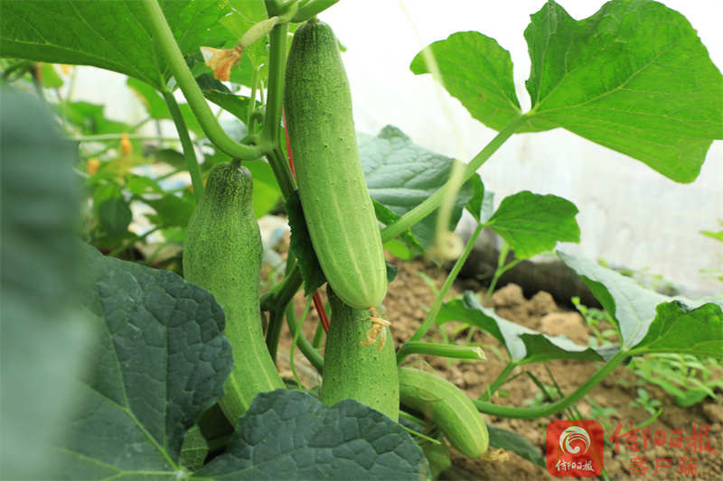 放眼杨贵祥的蔬菜大棚,瓜果飘香,蔬果满枝,一幅丰收在即的景象。