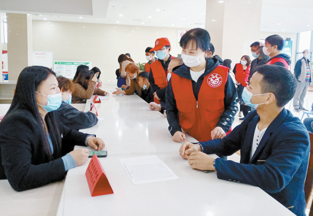 为精准服务残疾人就业,让更多有就业意愿的残疾人生活得更加美好稳定,5月12日,市残联携手爱心企业举办“我为残疾人送岗位”专场招聘会。现场应聘的残疾人在市残联志愿服务人员的指导和亲属的陪同下,仔细浏览着各招聘单位发布的信息,对有意向的企业耐心地询问工作地点、工资待遇等情况。图为招聘会现场。