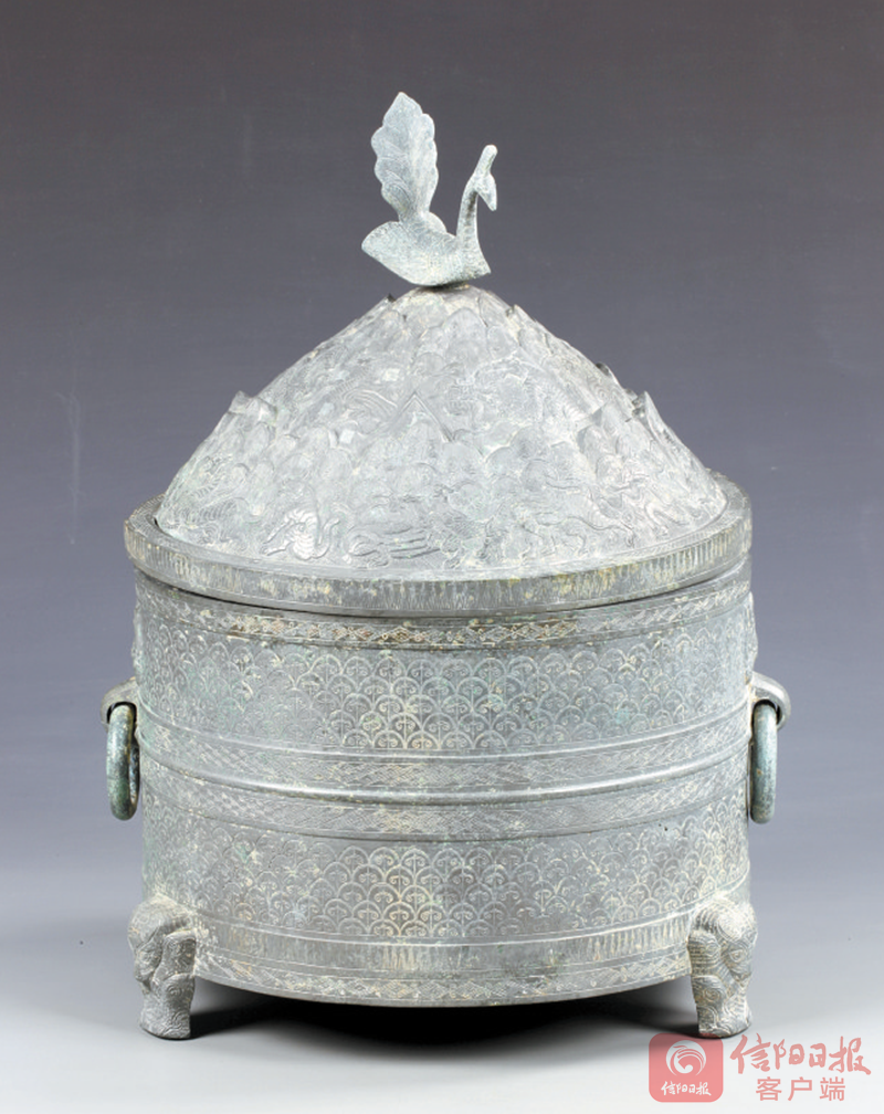 收藏于信阳博物馆的博山盖铜樽。记者 戴子翔 摄