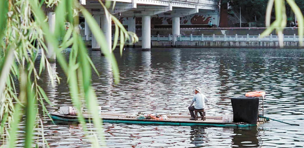 6月26日,清漂员在浉河上作业。近年来,我市多措并举,加大对浉河的治理力度,浉河呈现河水清澈、绿意盎然、景色宜人的美丽景象。