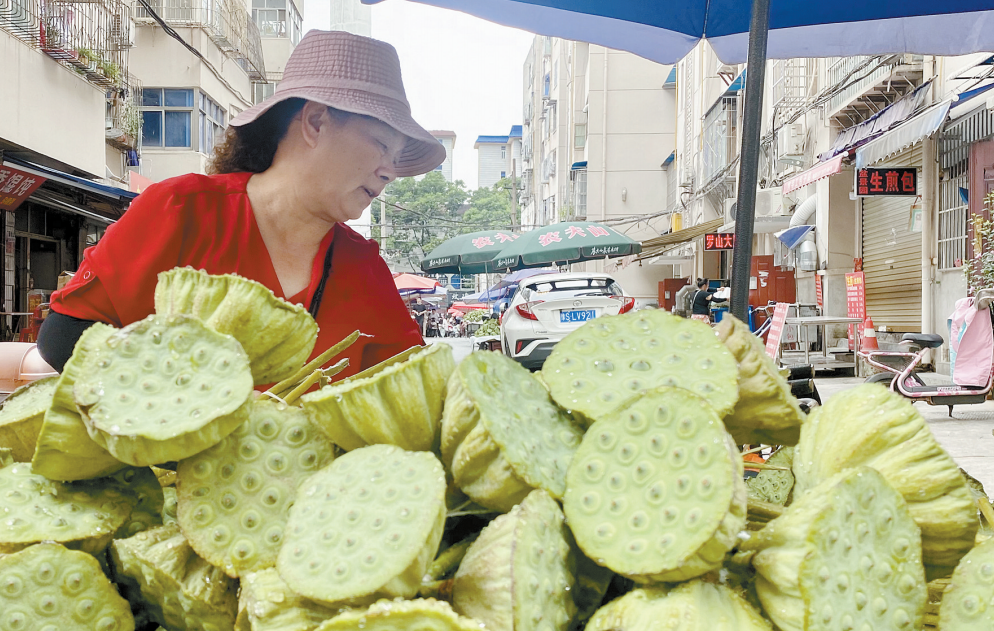 夏至过后,荷花盛开,莲蓬也新鲜上市,清甜的鲜嫩莲子成为独特的夏日味道。昨日,记者从市场上了解到,目前莲蓬陆续上市,多为市区周边荷塘采摘而来,每支价格2元左右。