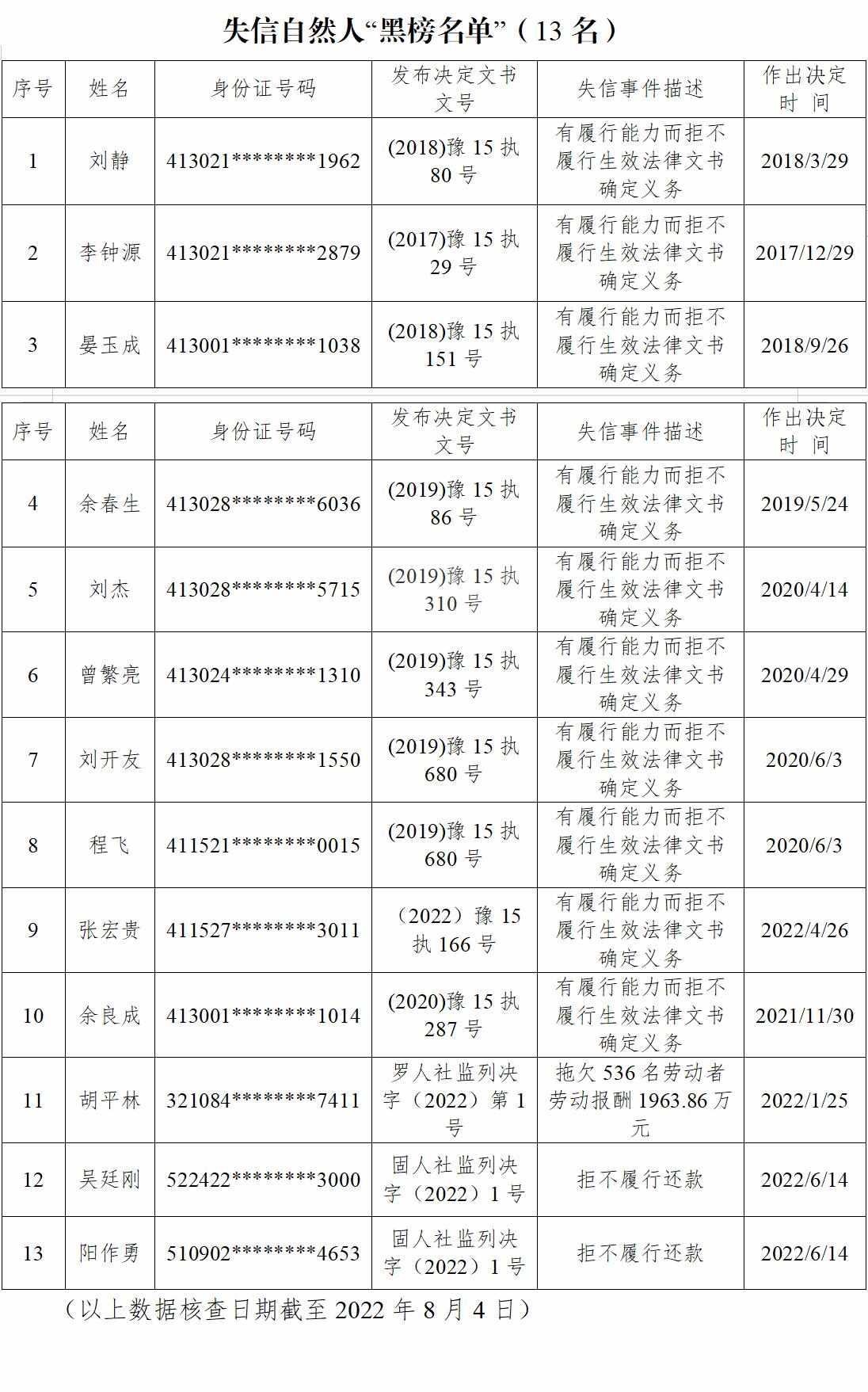 8月9日上午,信阳市2022年第一期诚信建设“红黑榜”新闻发布会举行。由市委文明办、市发改委联合组织相关职能部门发布,39家公司入选守信企业“红榜名单”、3人入选守信自然人“红榜名单”、10家公司被列入失信企业“黑榜名单”、13人被列入失信自然人“黑榜名单”。