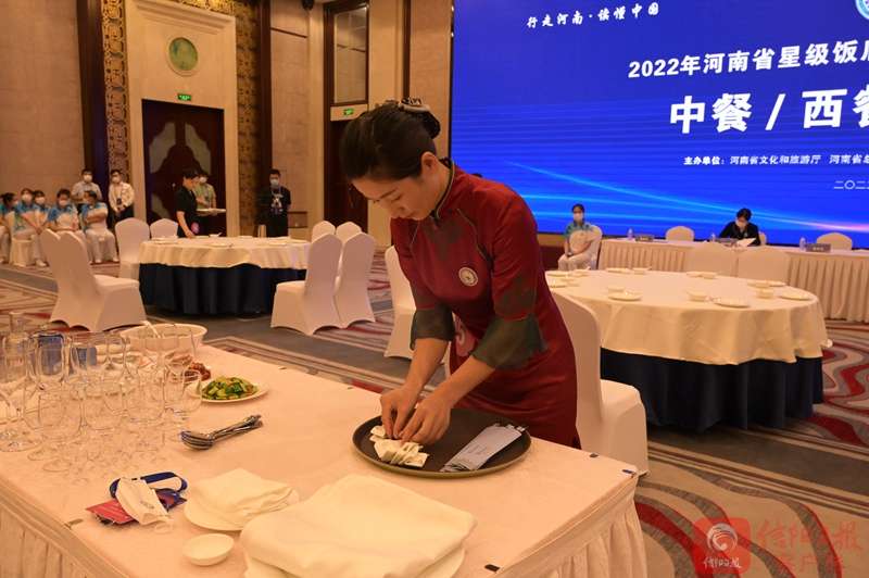 8月8日,2022年河南省星级饭店从业人员服务技能竞赛在信阳温德姆酒店启幕。省文化和旅游厅党组成员、副厅长朱建伟,副市长吕旅出席开幕式并讲话。来自全省18个地市代表队的68名选手参加此次大赛,脱颖而出的优秀选手将参加全国大赛。