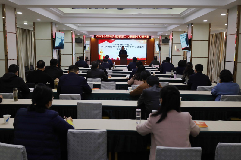 会议要求,全市教体系统要学原文,悟原理,在学深悟透上下功夫;要重研读,找政策,在谋划发展上下功夫;要抓统筹,促提升,在争先创优上下功夫。要把学习宣传贯彻党的二十大精神作为当前和今后一个时期的首要政治任务,坚决把思想和行动统一到党的二十大精神上来,做到学思用贯通、知信行统一,要坚持领导带头,在全市教体系统开展形式多样的学习宣传贯彻落实活动;要发挥好桥梁纽带作用,把全市教体系统党员干部和师生员工凝聚到党的二十大确定的各项任务上来,推动党的二十大作出的重大决策部署在教体系统条条落实、件件落地、事事见效。