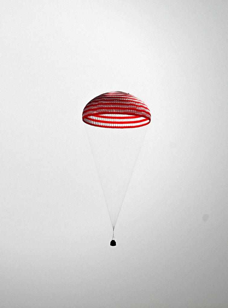 神舟十三号载人飞船返回舱在东风着陆场预定区域成功着陆。(新华社记者连振 摄)