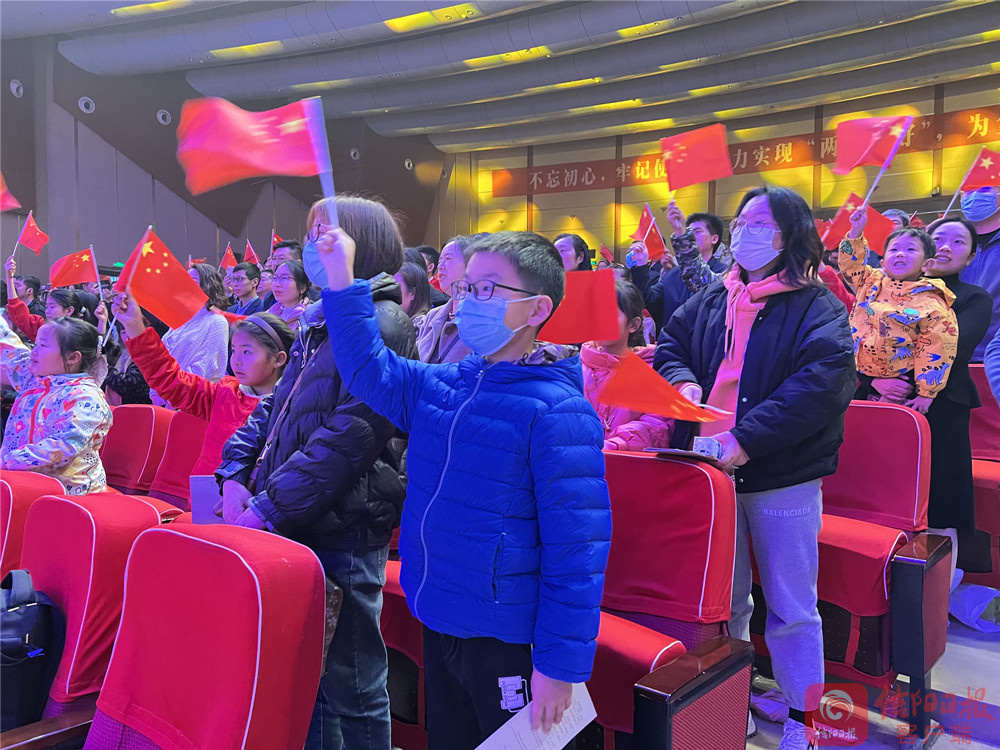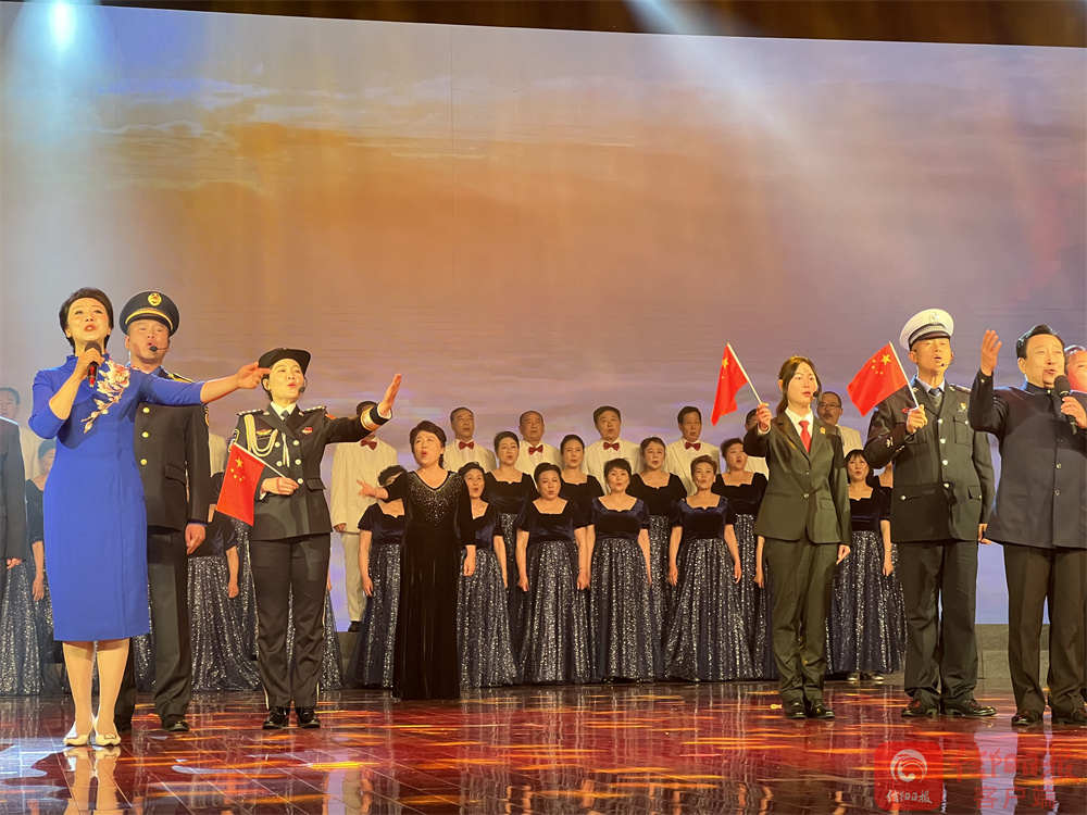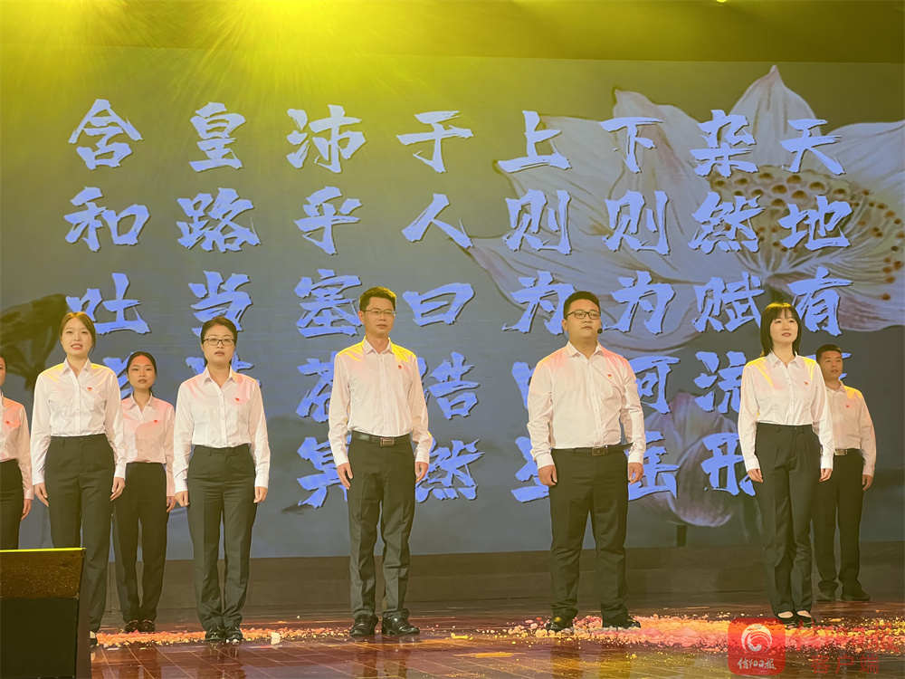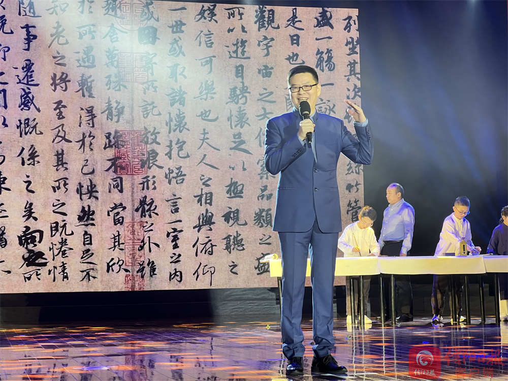 《兰亭集序》酒后神笔妙在哪里?经典推荐人、南京师范大学教授、博士生导师郦波在朗诵会上分享了那旷世名篇;那些读过的诗词,在自己的生命中伏脉千里、永不消逝……经典推荐人、北京大学博士、中国诗词大会第四季总冠军陈更的讲述让经典诗篇焕发新光彩;怒发冲冠,凭栏处,一首激昂彭拜的《满江红》,激发了广大观众的报国之志;在信阳取景的影片《俺的傻娘》的主创声情并茂讲述人间大爱;一起读书吧,我市作家胡亚才、温青 、侠客飞鹰 、詹丽等朗诵的诗词、散文,让书香充盈会场;朗诵会在歌曲《中国心》中落下帷幕,全体人员挥动五星红旗,齐声高唱,家国情怀在经典名篇中流淌。