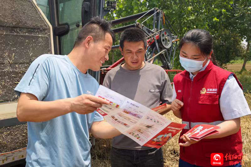 我市作为全国弱筋小麦的重要产区,眼下已全部进入成熟收割期。为确保麦农颗粒归仓,近日,信阳市消防救援支队宣传人员联合消防志愿者,走乡村、到地头,宣传麦收防火灭火常识,为农民朋友的粮食安全归仓筑牢“防火网”。