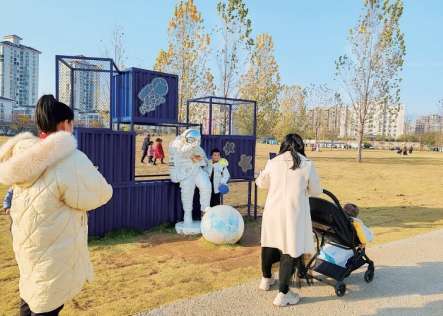 近日,市民在信阳青年营地游玩打卡。信阳青年营地位于新五大道以南、新七大道以北、新十六大街以东,占地约280亩。自今年上半年开放以来,作为城市公园的信阳青年营地,为广大市民提供了一个散步、露营、看电影、看演出、休闲拍照的好去处,深受大家喜爱。