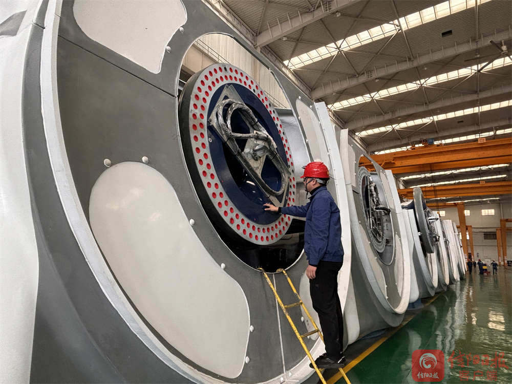 昨日,走进河南明阳智慧能源有限公司陆上风机总装车间,车间即将上马生产的陆上8.0MW风机发电机组蓄势待发。该公司有关负责人为记者算了一笔账:在满发风速下,单台机组一年产生的清洁电力可以满足约11000个三口之家一年的生活用电需求,相当于每年节约1万吨标准煤,减少二氧化碳排放3万吨。“在大力发展新质生产力上,我们有能力、有信心彰显明阳力量。”该负责人坚定地说。