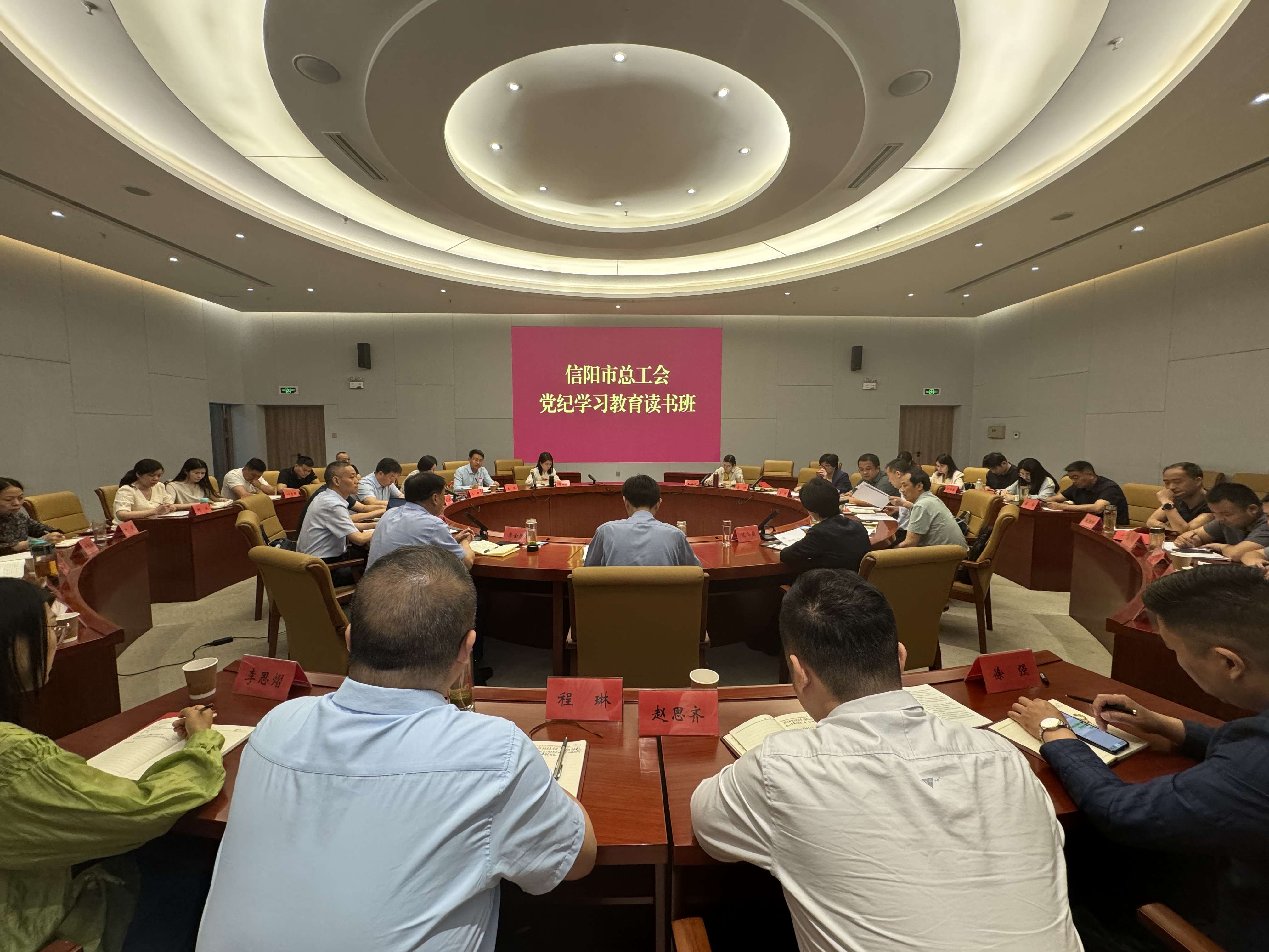 5月10日至11日,信阳市总工会举办党纪学习教育读书班,以专题辅导、警示教育、个人自学、研讨交流相结合的方式进行党纪学习教育。市人大常委会副主任、市总工会主席张全胜出席活动并讲话,市总工会全体干部职工参加活动。