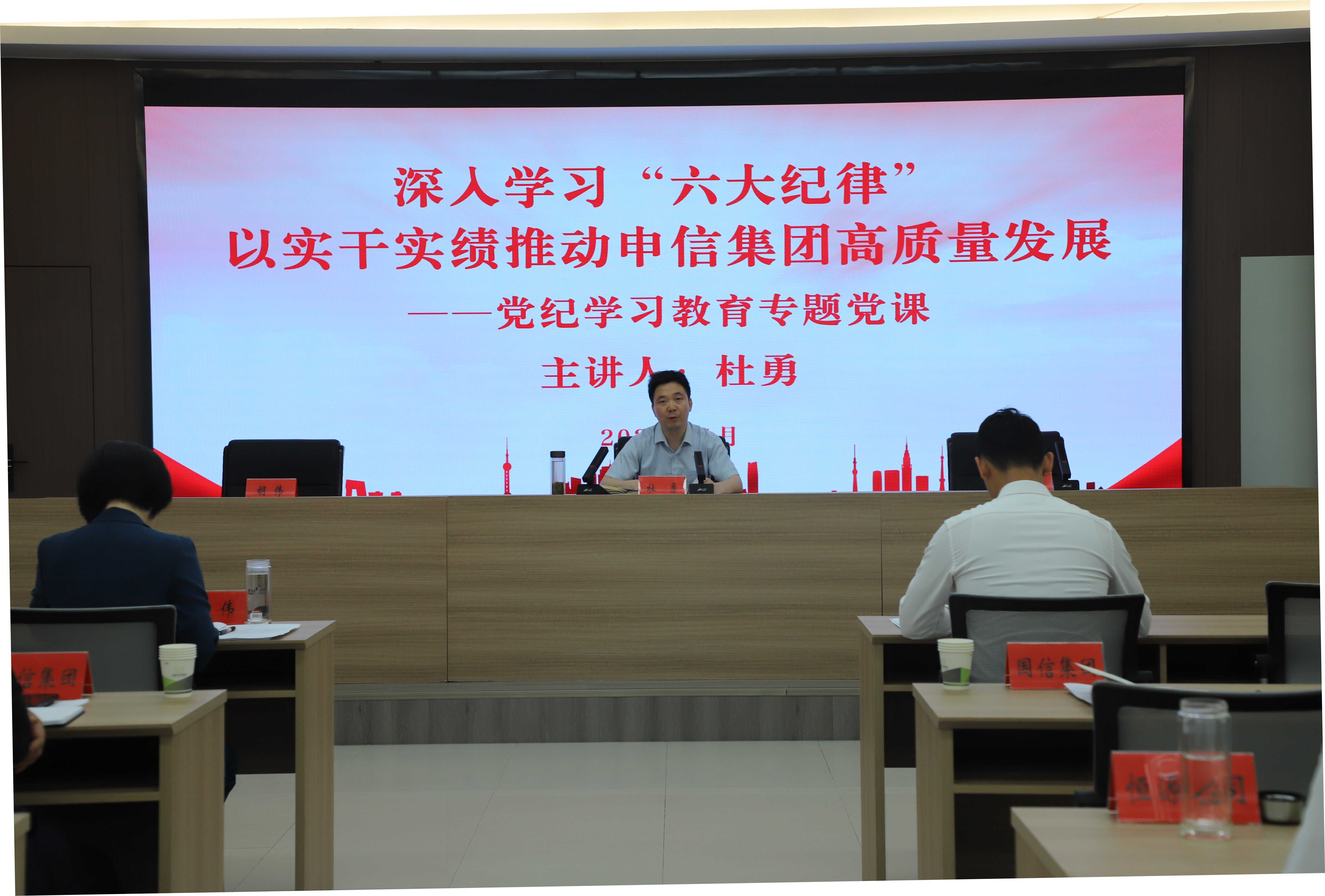 读书班学习了省委、市委读书班会议精神和《中国共产党纪律处分条例》,集中观看了警示教育片《铁规矩硬杠杠》。申信集团党委副书记、副董事长杜勇讲授了《深入学习“六大纪律” 以实干实绩推动申信集团高质量发展》专题党课。
