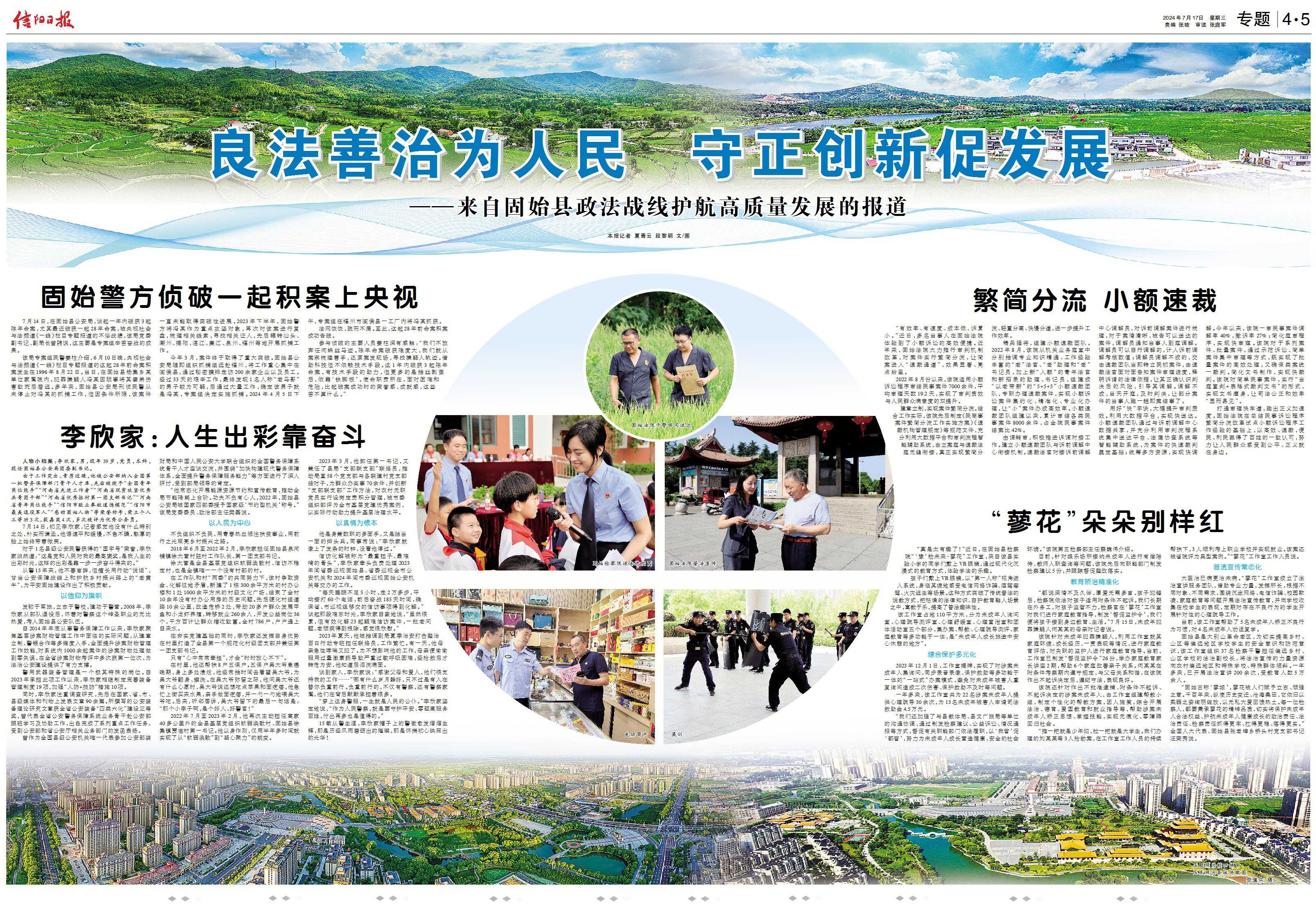 发轫于军旅,立志于警校,建功于警营。2008年,李欣家从部队退役后,怀着对警察这个神圣职业的无比热爱,考入固始县公安队伍。