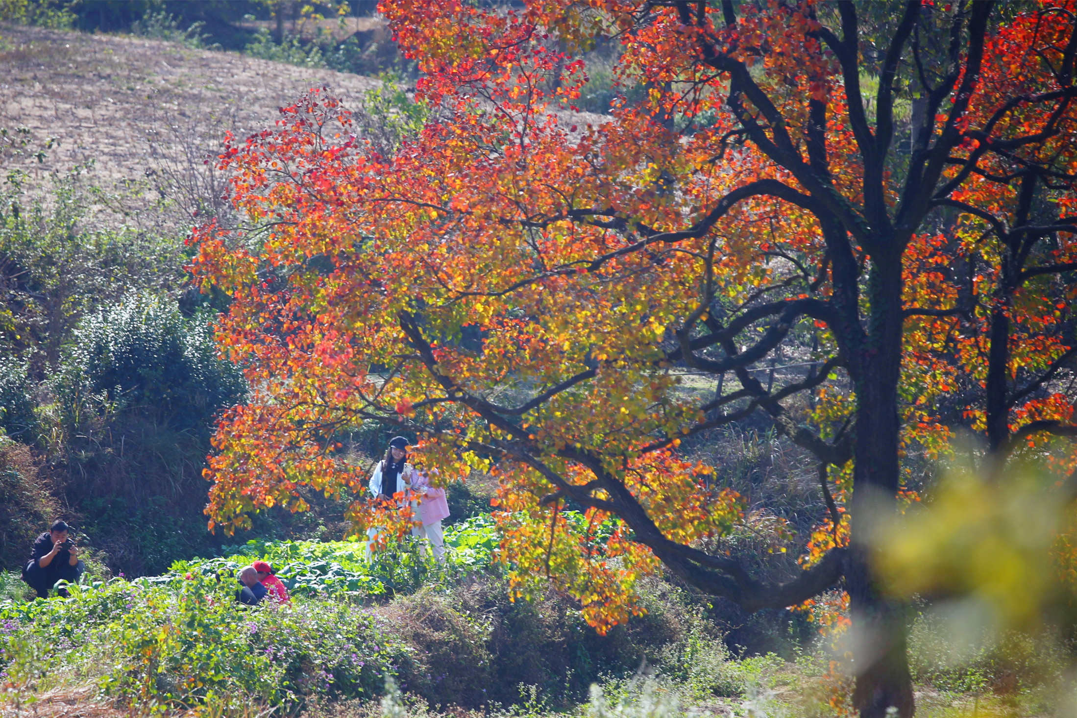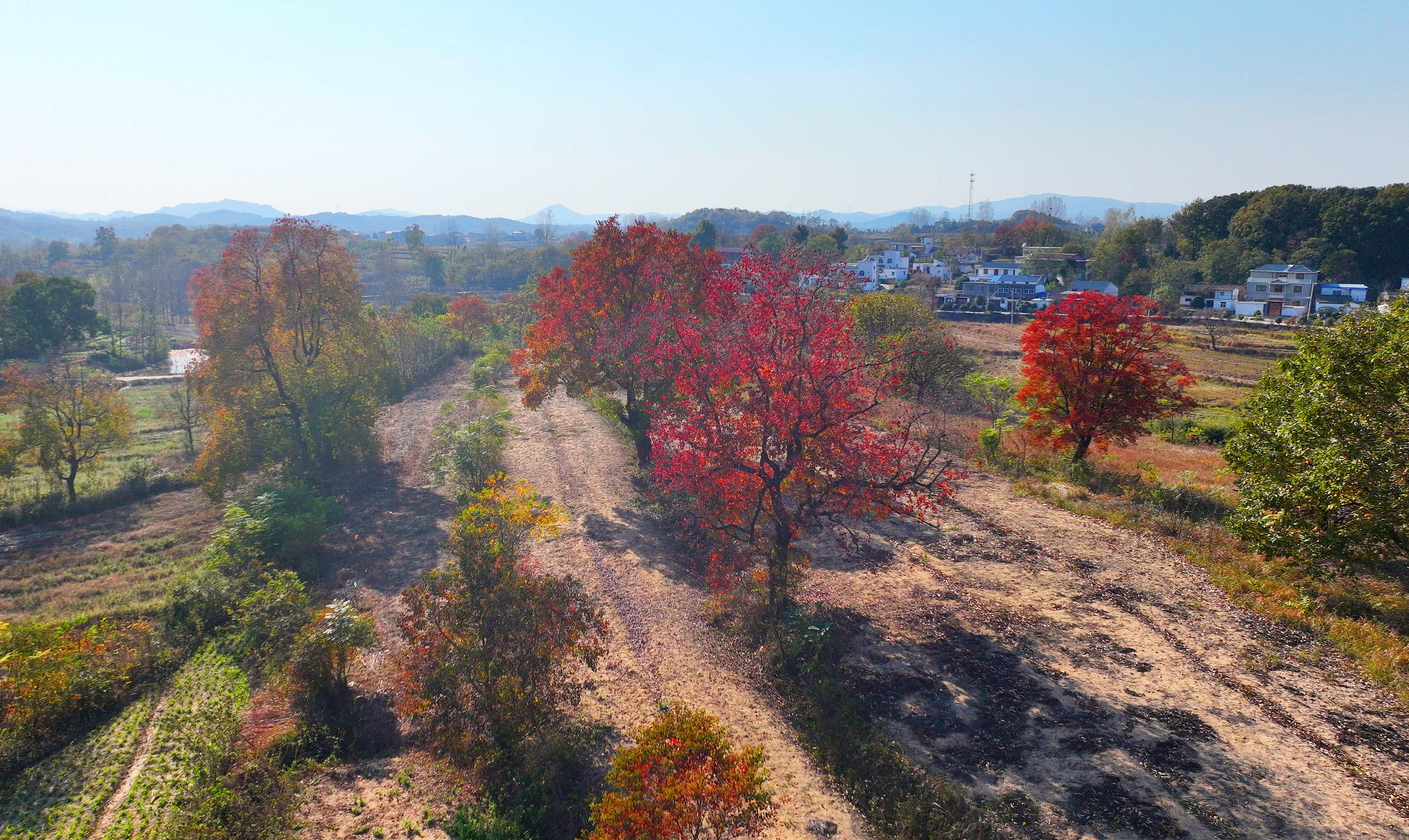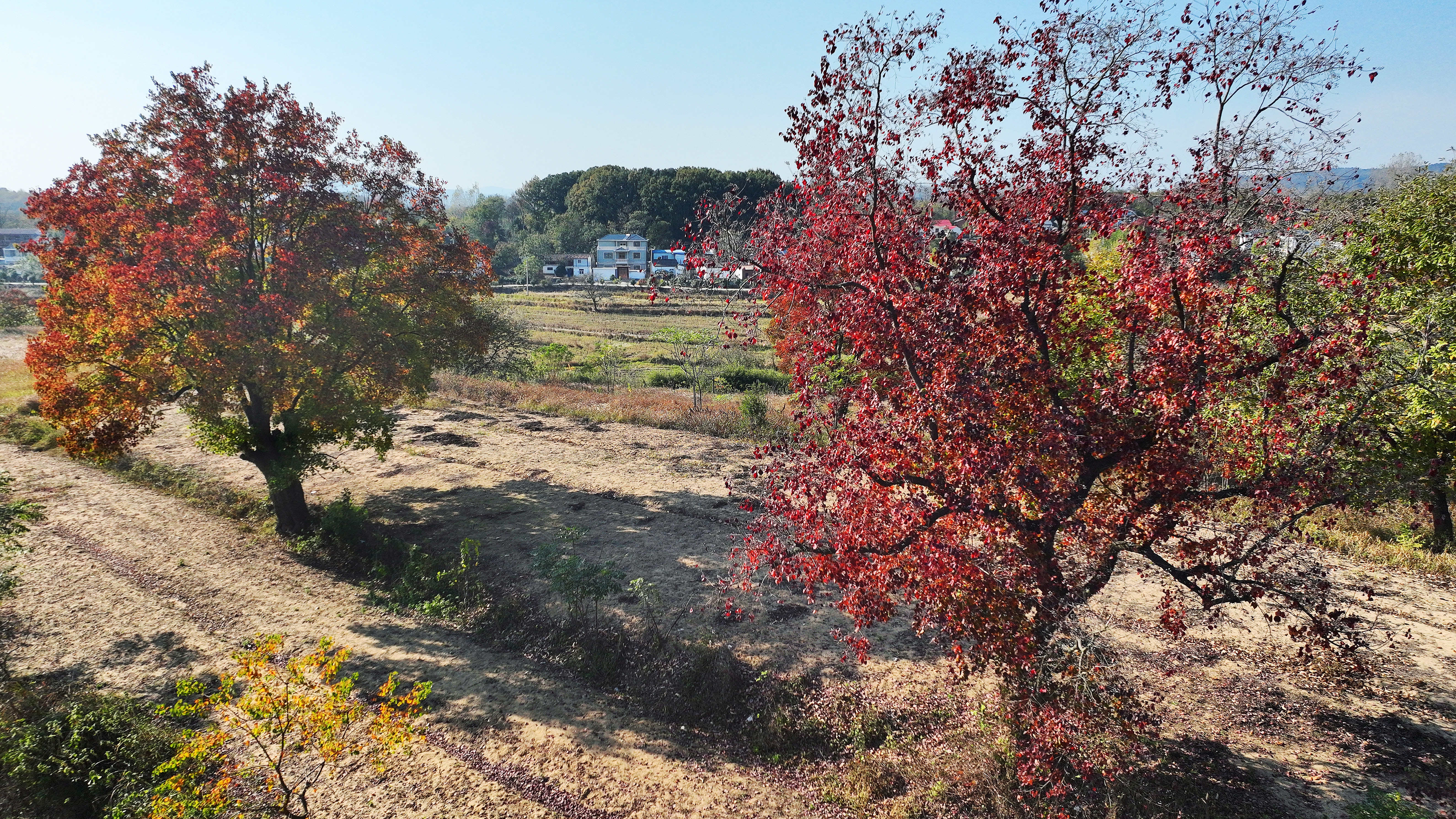 巾子峰头乌桕树,微霜未落已先红。连日来,新县箭厂河乡迎来乌桕树最佳观赏季节。记者了解到,乌桕树叶最佳观赏期将维持至11月中下旬,随着气温的下降树叶将逐渐脱落,叶落后满树白色种子覆盖树冠如积雪,亦可观赏。