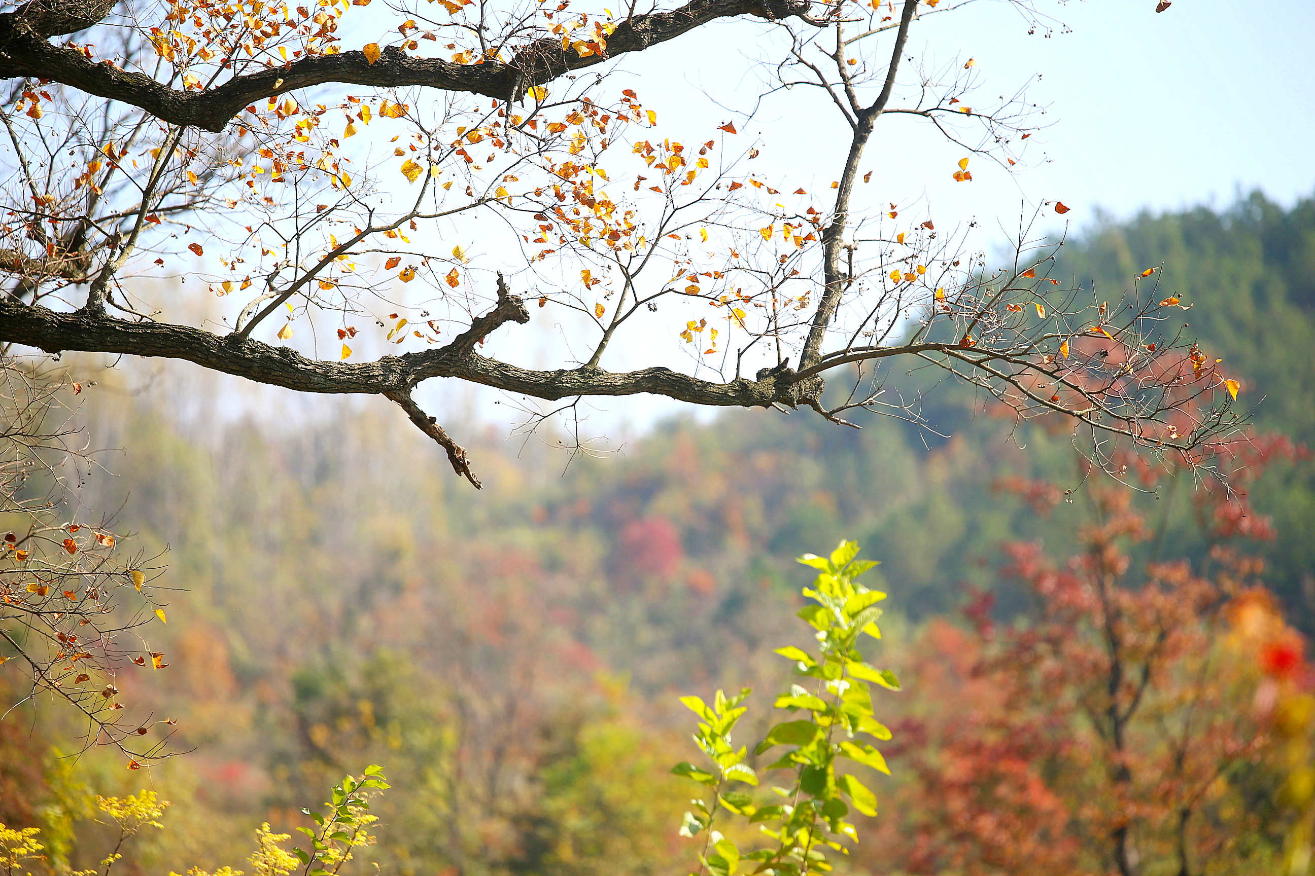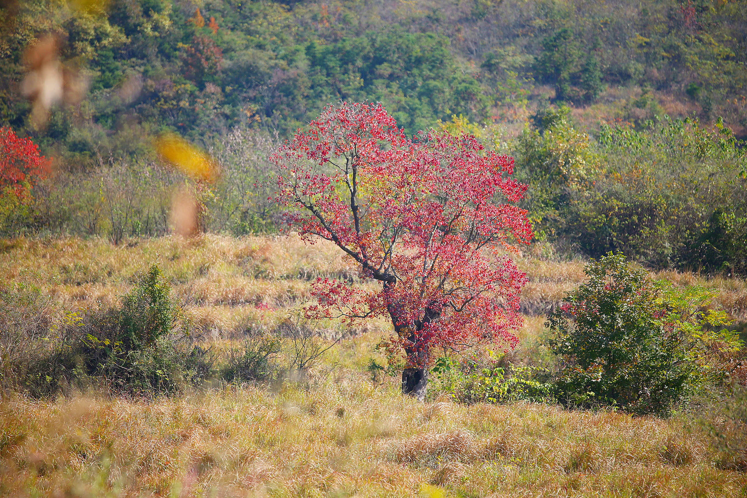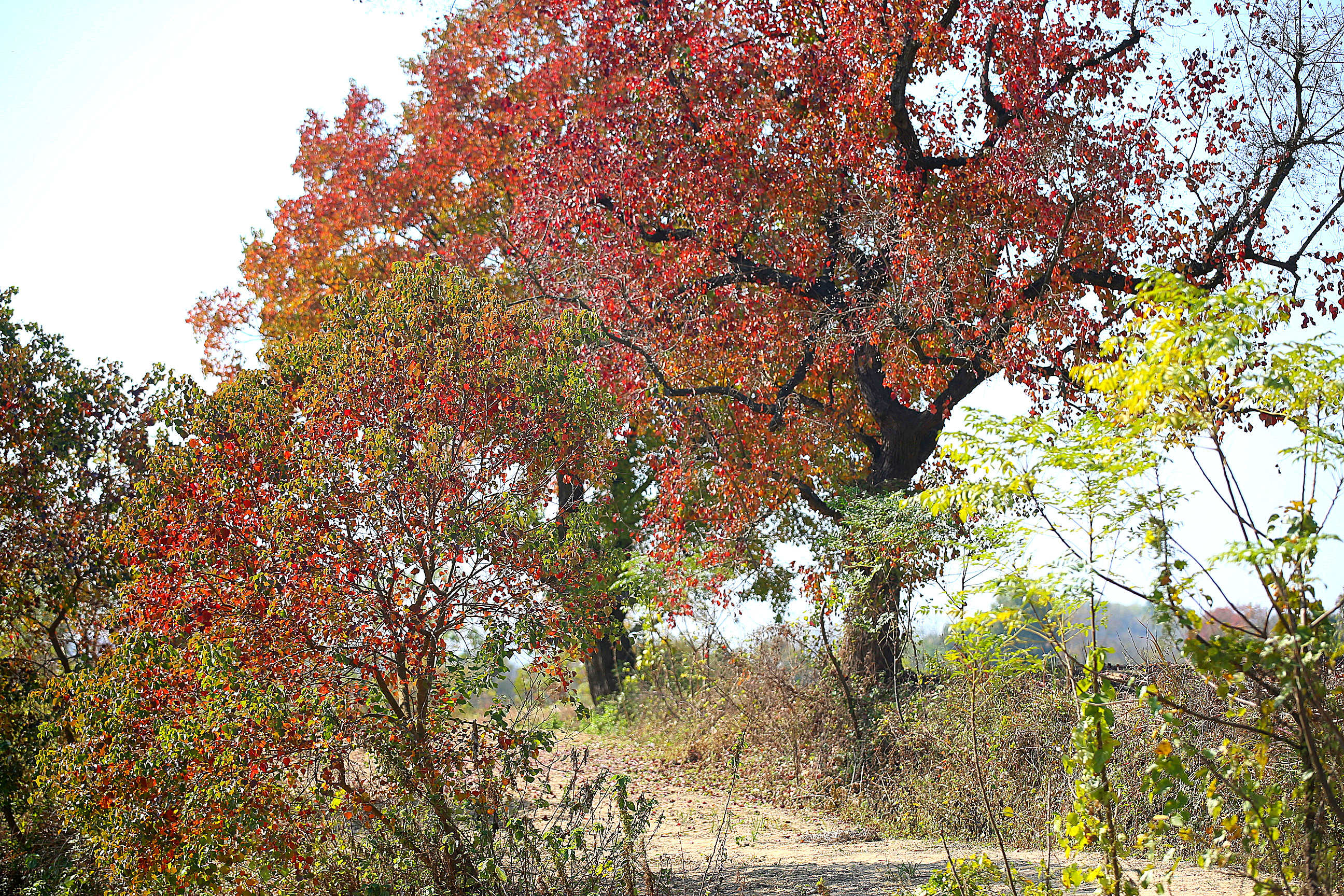 巾子峰头乌桕树,微霜未落已先红。连日来,新县箭厂河乡迎来乌桕树最佳观赏季节。记者了解到,乌桕树叶最佳观赏期将维持至11月中下旬,随着气温的下降树叶将逐渐脱落,叶落后满树白色种子覆盖树冠如积雪,亦可观赏。