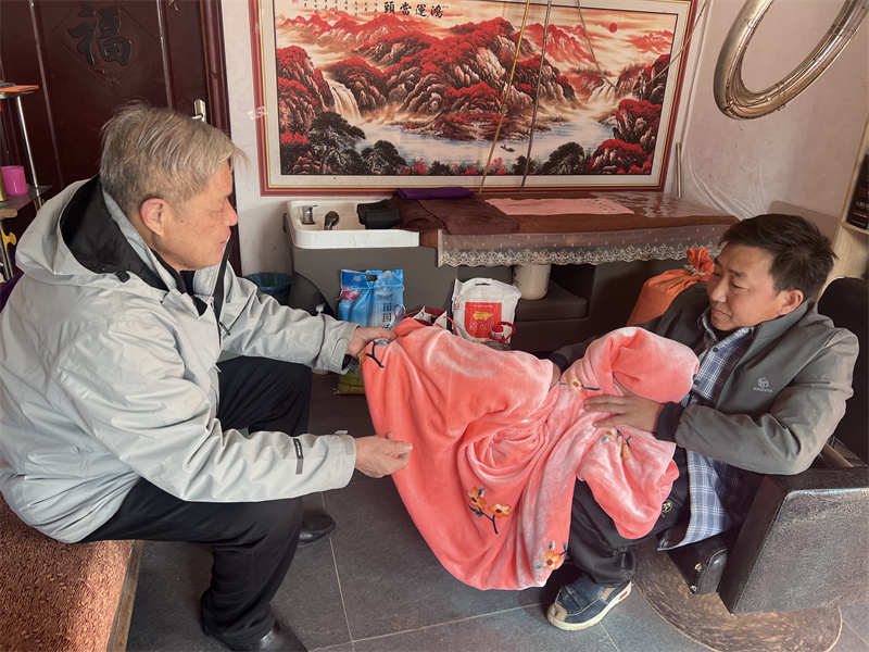 12月18日上午,寒风凛冽,方德海再次来到平桥区龙井乡,给身体残疾群众黄乃友送来保暖毛毯和米面油。“中秋节您才来看望我的,这又来了,非常感谢!”拉着方德海的手,黄乃友激动得不知道说什么才好。