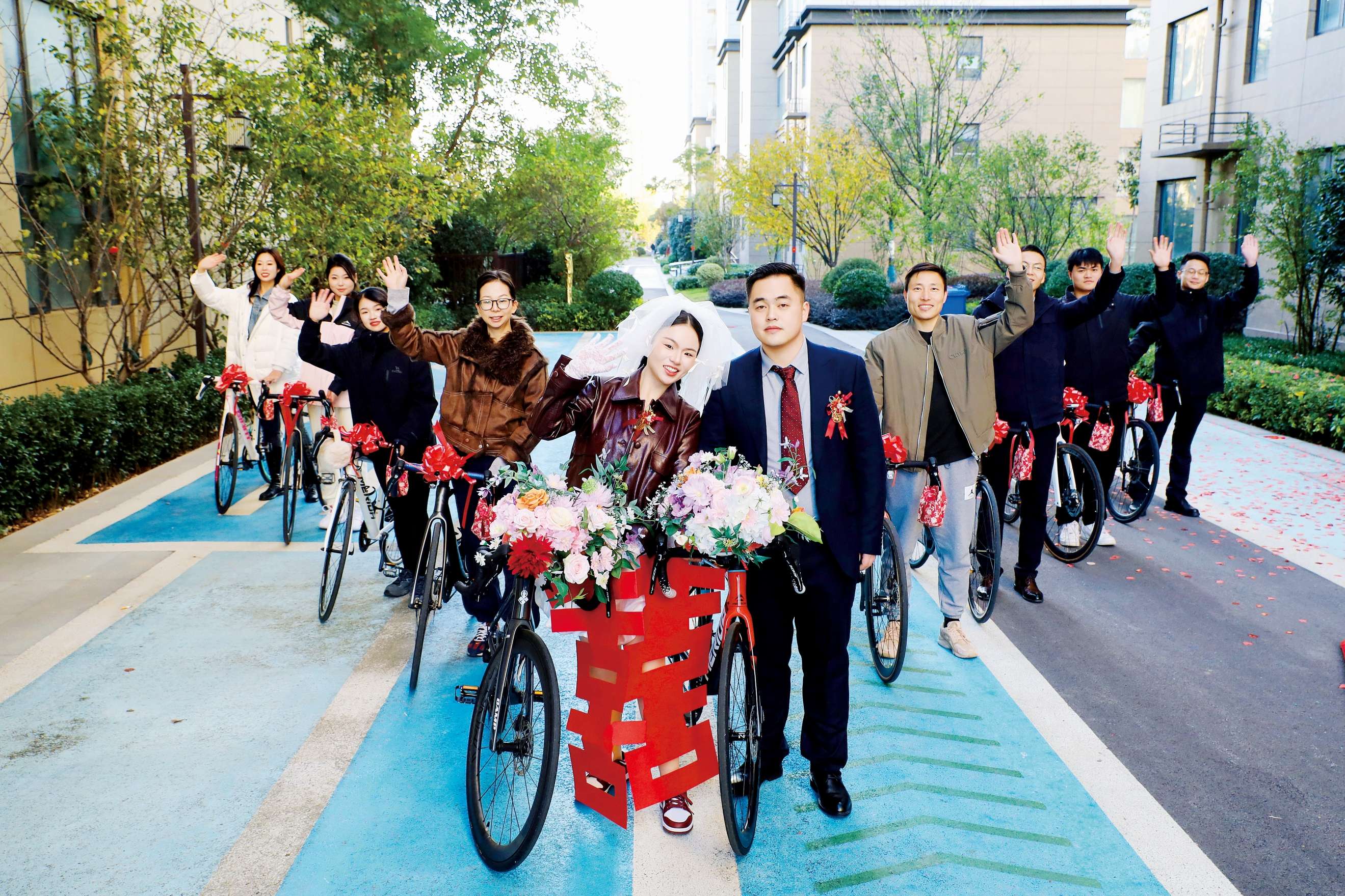 近日,由5对情侣寓意“十全十美”的单车迎亲队伍亮相固始县街头,成为一道亮丽的风景。
