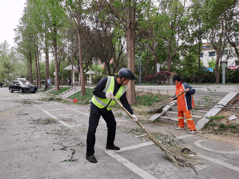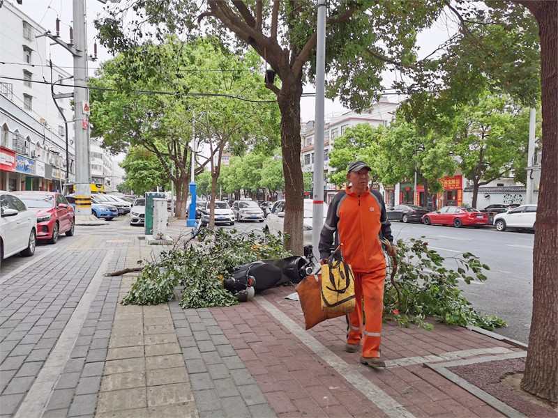 4月12日一早,市园林中心组织7个园林绿化应急抢险小组,配备吊车、电锯、运输车等专业抢险设备,对主城区倒伏树木和折断树枝,按照“先排险、后清理”的原则,在施工区域迅速张贴安全警示标识,设置警戒线,组织人员和设备进行清理,确保道路畅通和行人安全。12日上午,园林中心共出动55人,排查倒伏树木72株、折断树枝40处。