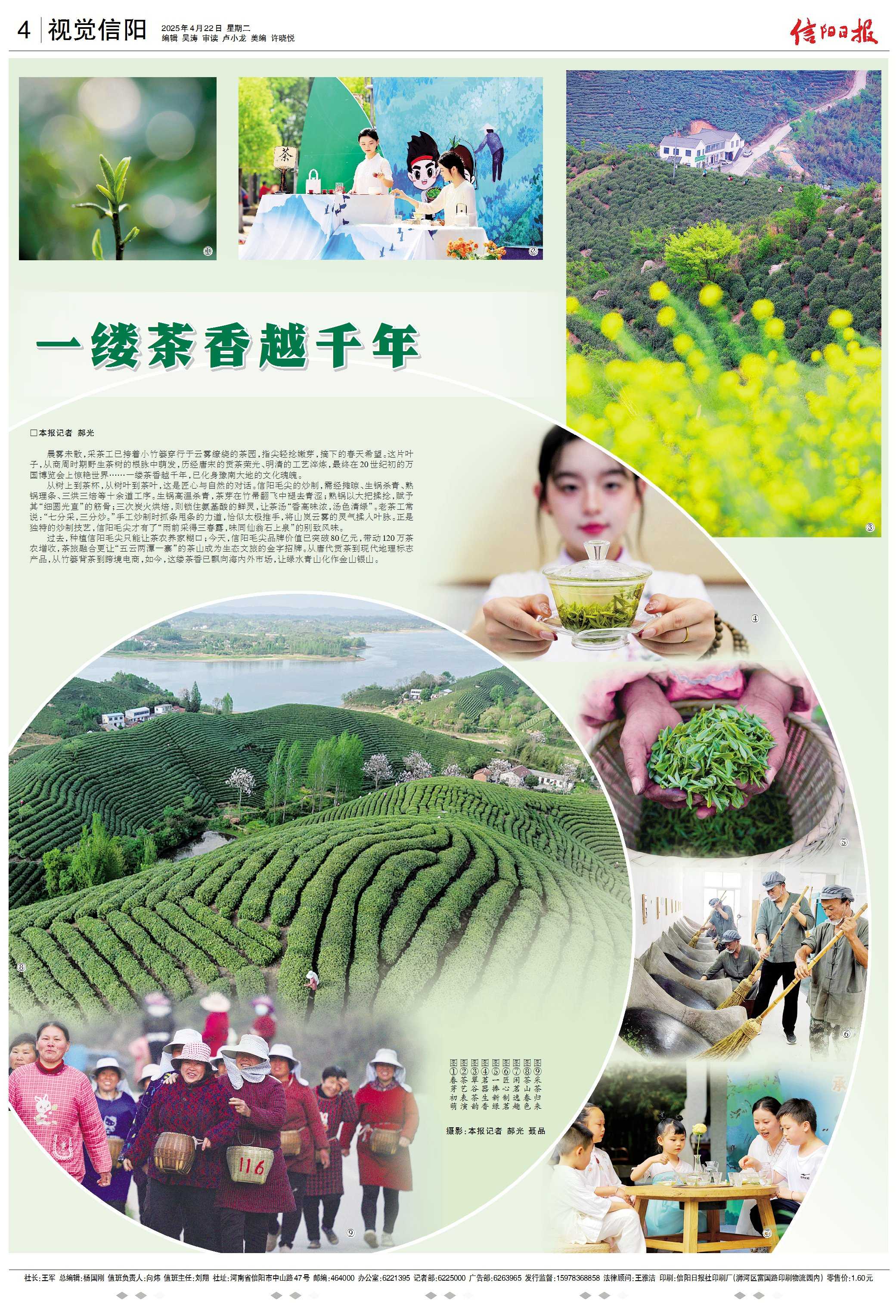 晨雾未散,采茶工已挎着小竹篓穿行于云雾缭绕的茶园,指尖轻捻嫩芽,摘下春天的希望。这片叶子,从商周时期野生茶树的根脉中萌发,历经唐宋的贡茶荣光、明清的工艺淬炼,最终在20世纪初的万国博览会上惊艳世界……一缕茶香越千年,已化身为豫南大地的文化魂魄。