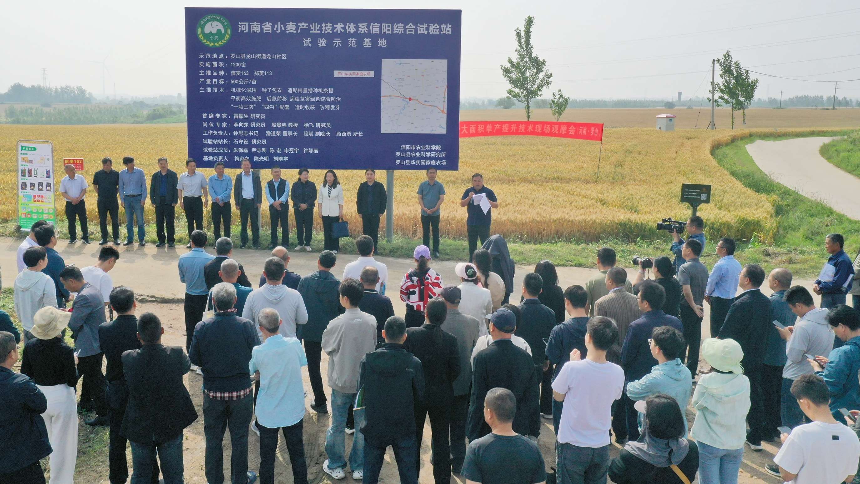 “把论文写在田间地头,让技术长在泥土之中。”市农科院党组书记、院长钟思志在罗山县华实园家庭农场观摩时,望着一片金黄的小麦坚定地说,“我们院将持续深化‘专家+基地+农户’科技服务模式,建立常态化联系机制,为农业生产提供全链条技术服务,让农业科技像春天的雨水一样,滋润每一寸土地,为端牢中国饭碗贡献信阳农科力量!”(图片由市农科院提供)