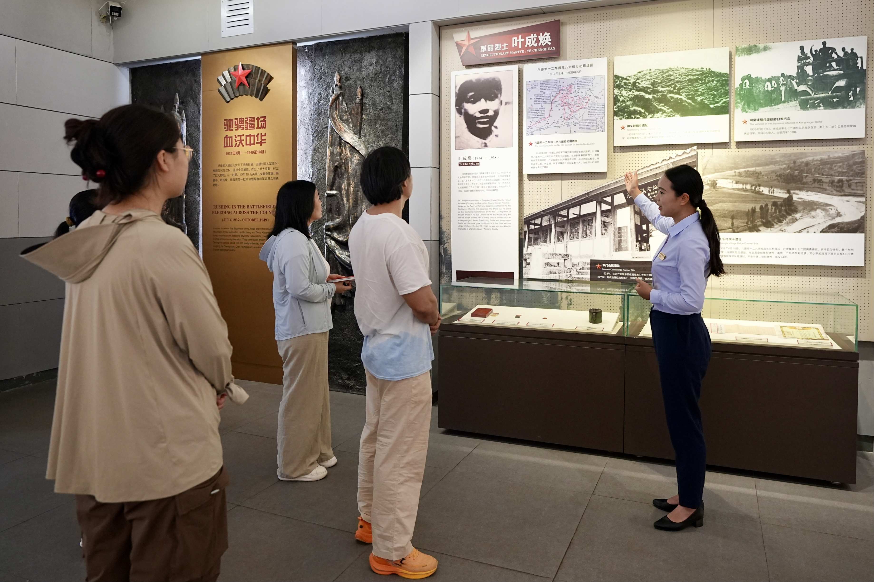 鄂豫皖苏区首府烈士陵园讲解员张亚君讲述英烈故事。记者 唐丰 摄