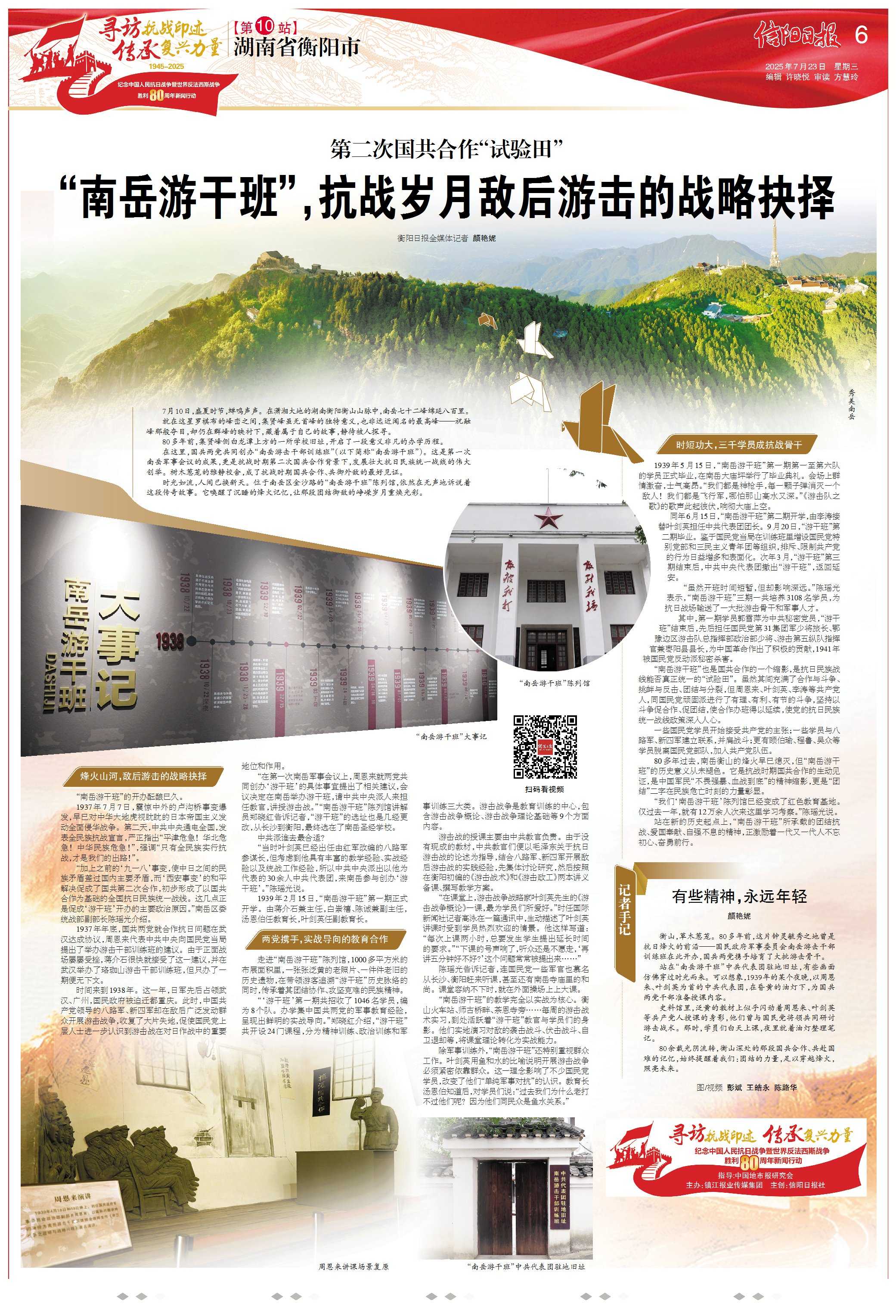 站在新的历史起点上,“南岳游干班”所承载的团结抗战、爱国奉献、自强不息的精神,正激励着一代又一代人不忘初心、奋勇前行。