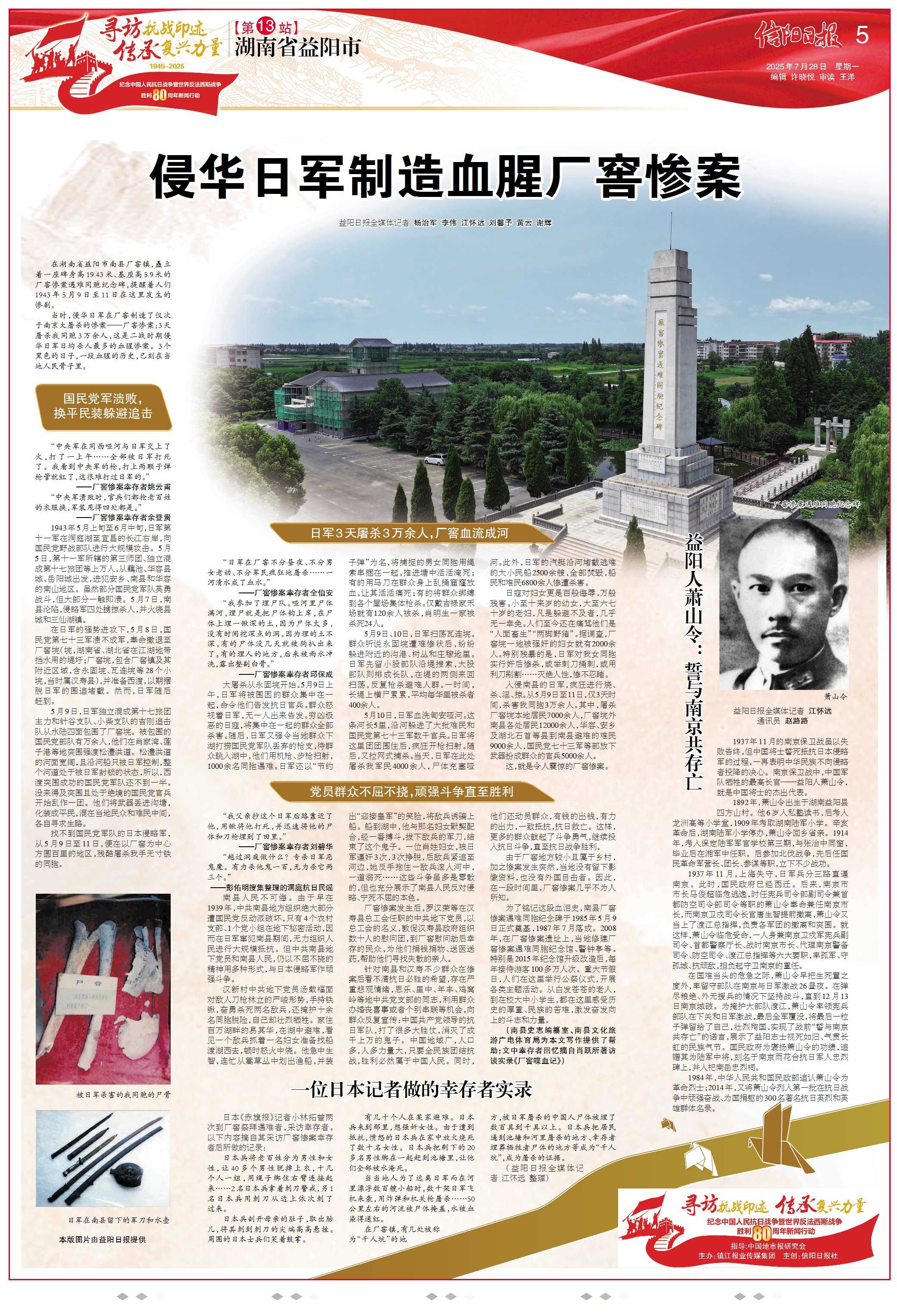 在湖南省益阳市南县厂窖镇,矗立着一座碑身高19.43米、基座高5.9米的厂窖惨案遇难同胞纪念碑,提醒着人们1943年5月9日至11日在这里发生的惨剧。