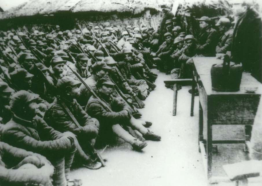 反“清乡”斗争时期,新四军一师三旅在十总店作战前动员。