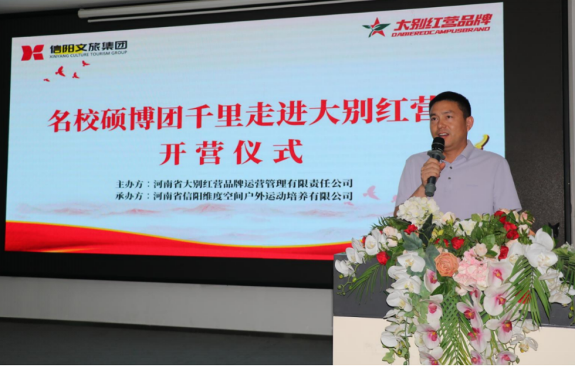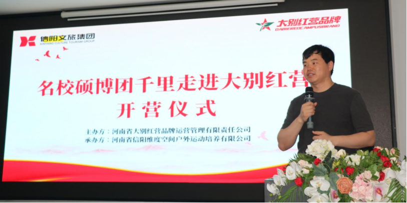 8月4日上午,名校硕博团“千里走进大别红营”研学活动开营仪式在鸡公山袋鼠营地举行。来自全国知名高校的青年学子齐聚信阳,与大别红营品牌双向奔赴,开启一场理论与实践深度融合的红色研学之旅。
