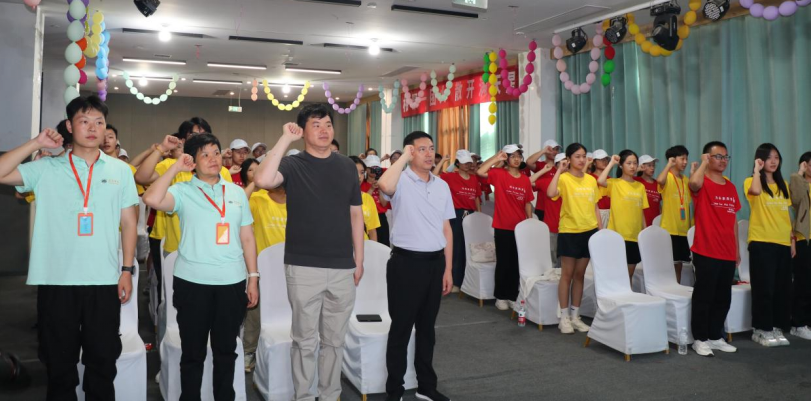 随后的授旗仪式将现场气氛推向高潮,当营旗从黄波手中传递至周思吟手中,象征着“青春接力棒”在传承。全体硕博团员在营旗下庄严宣誓:“追寻红色印记,传承革命精神……淬炼少年锋芒,行动筑梦青春”,并齐声高唱经典红歌《八月桂花遍地开》,以歌声铭刻初心。