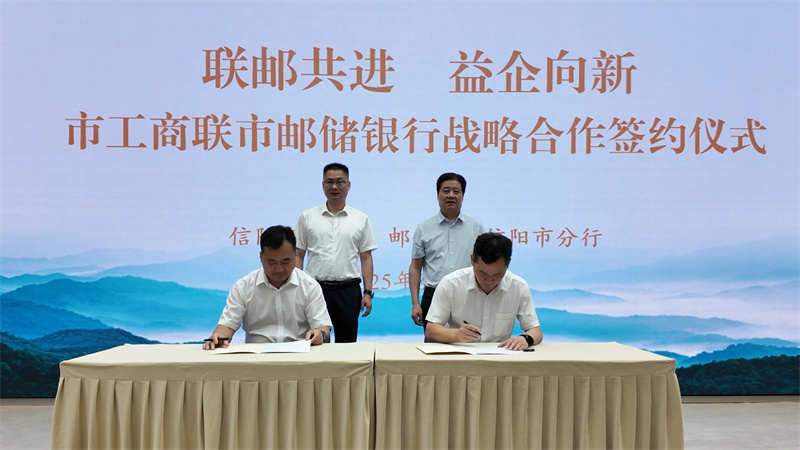 8月7日,“联邮共进益企向新”邮储银行信阳市分行与市工商联战略合作签约仪式在信商之家举行。市政协副主席、市工商联主席李俊杰,邮储银行信阳市分行党委书记、行长吴满刚等出席本次活动。