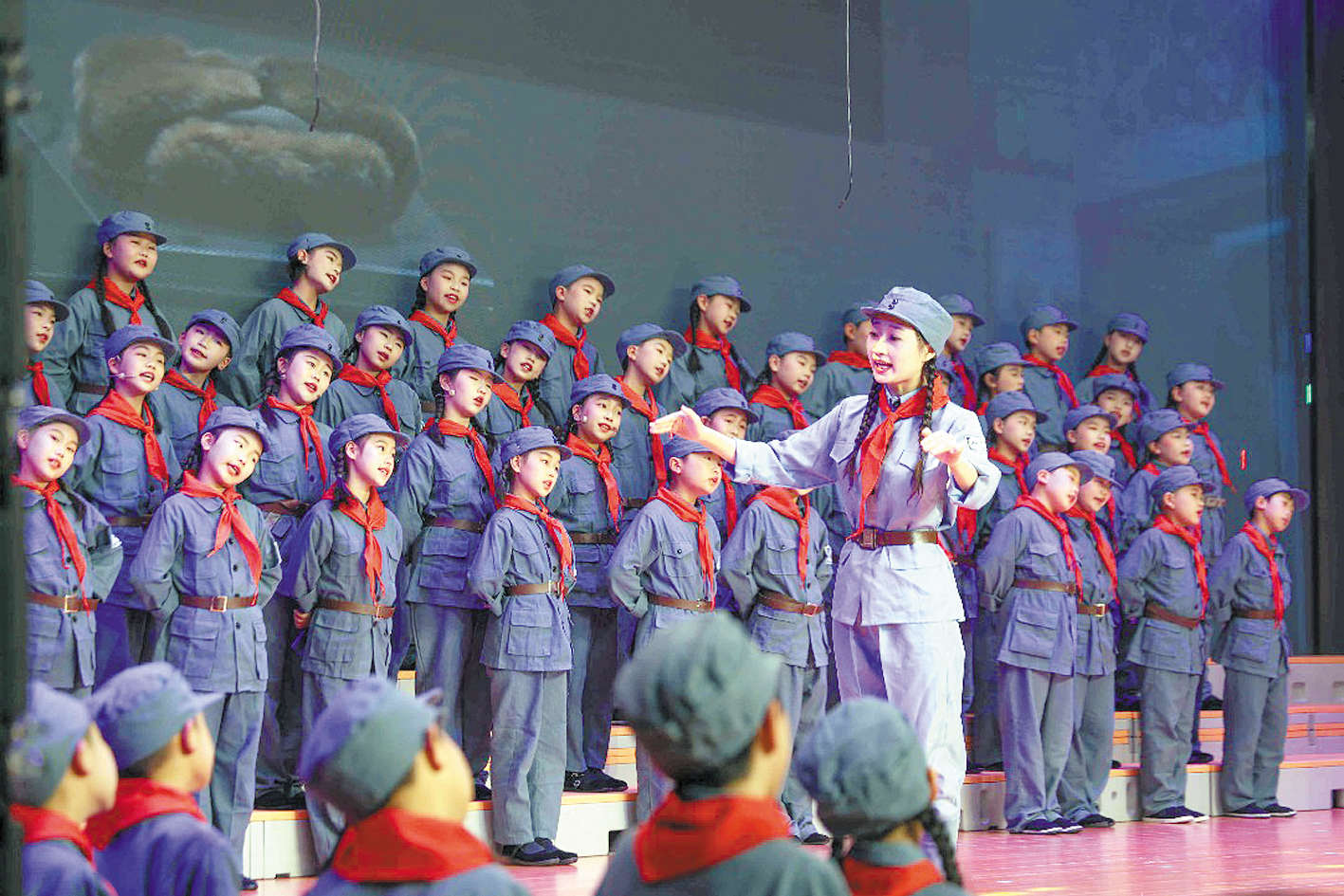 学生表演合唱《童声里的新四军》。 倪静 摄