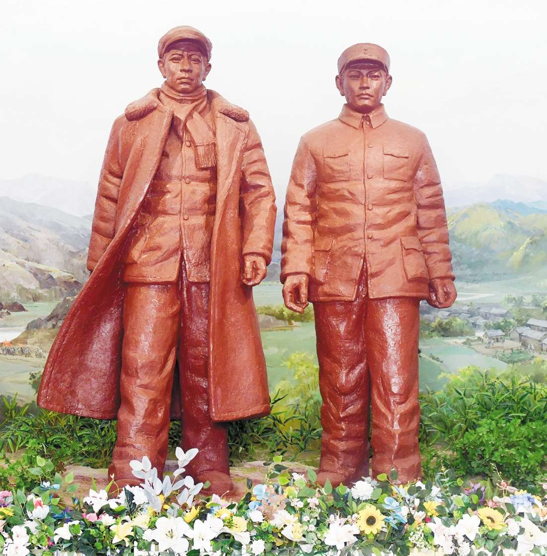 确山竹沟革命纪念馆内刘少奇、李先念雕像