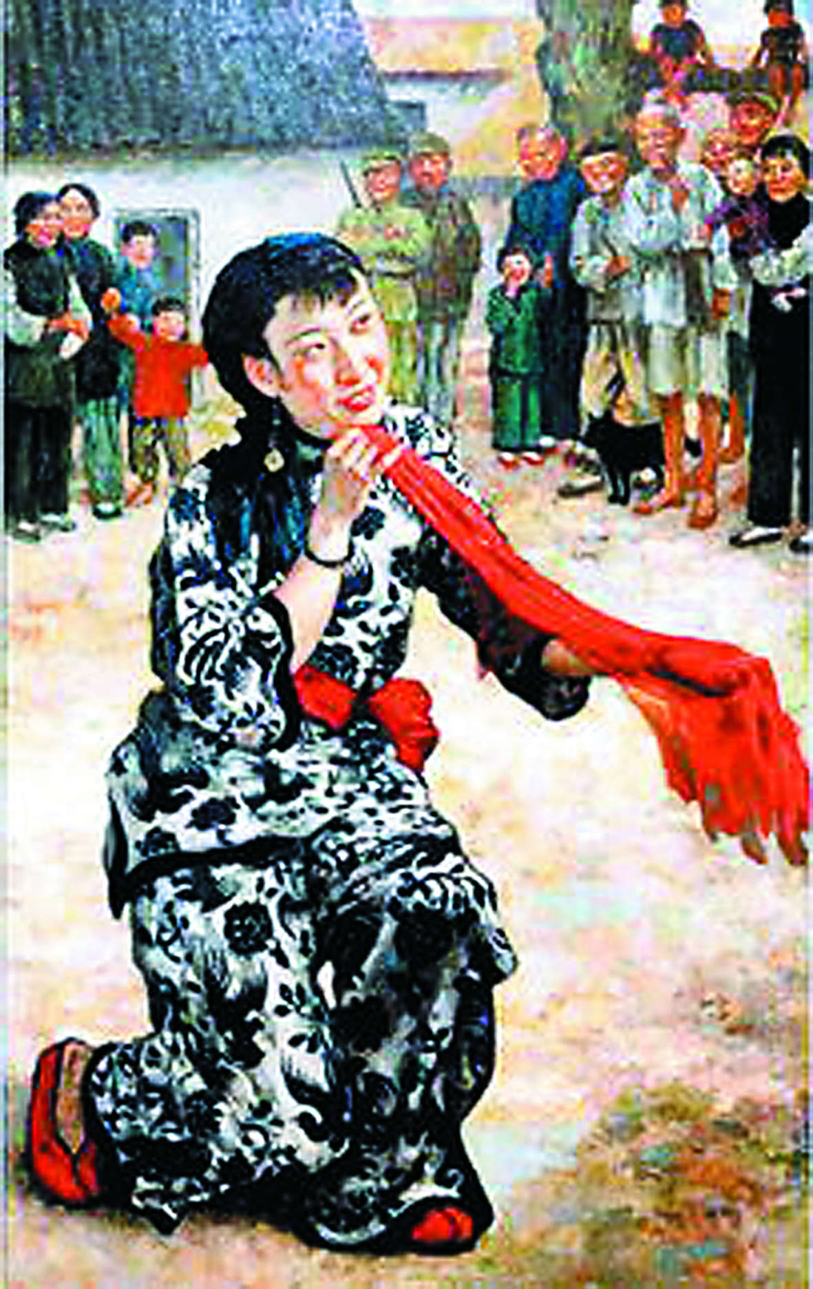 徐悲鸿为上海救亡演剧队第二队队员王莹演出所画画作《放下你的鞭子》。资料图片