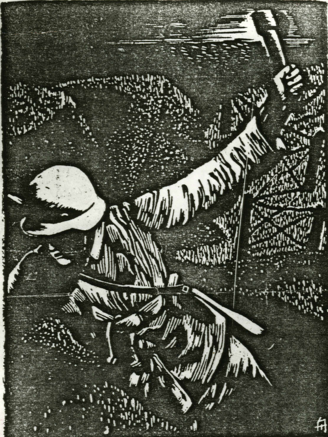 徐州画家王寄舟所作的抗日木刻《看准了敌人》。资料图片