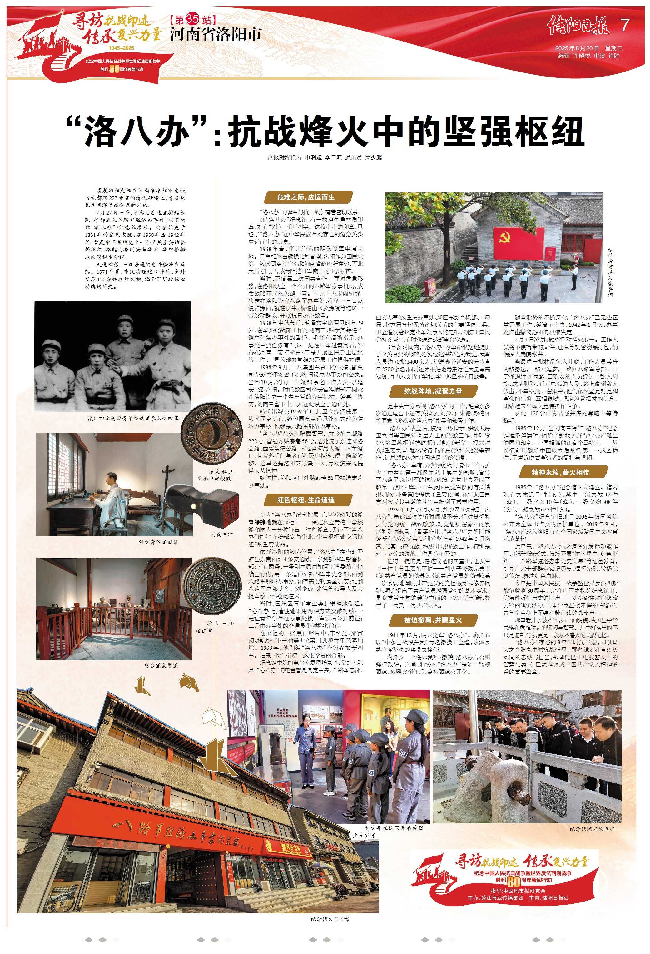 “洛八办”存在的3年半时光虽短,却以星火之光照亮中原抗战征程。那些镌刻在青砖灰瓦间的忠诚与担当,那些隐匿于电波密文中的智慧与勇气,已然熔铸成中国共产党人精神谱系的重要篇章。