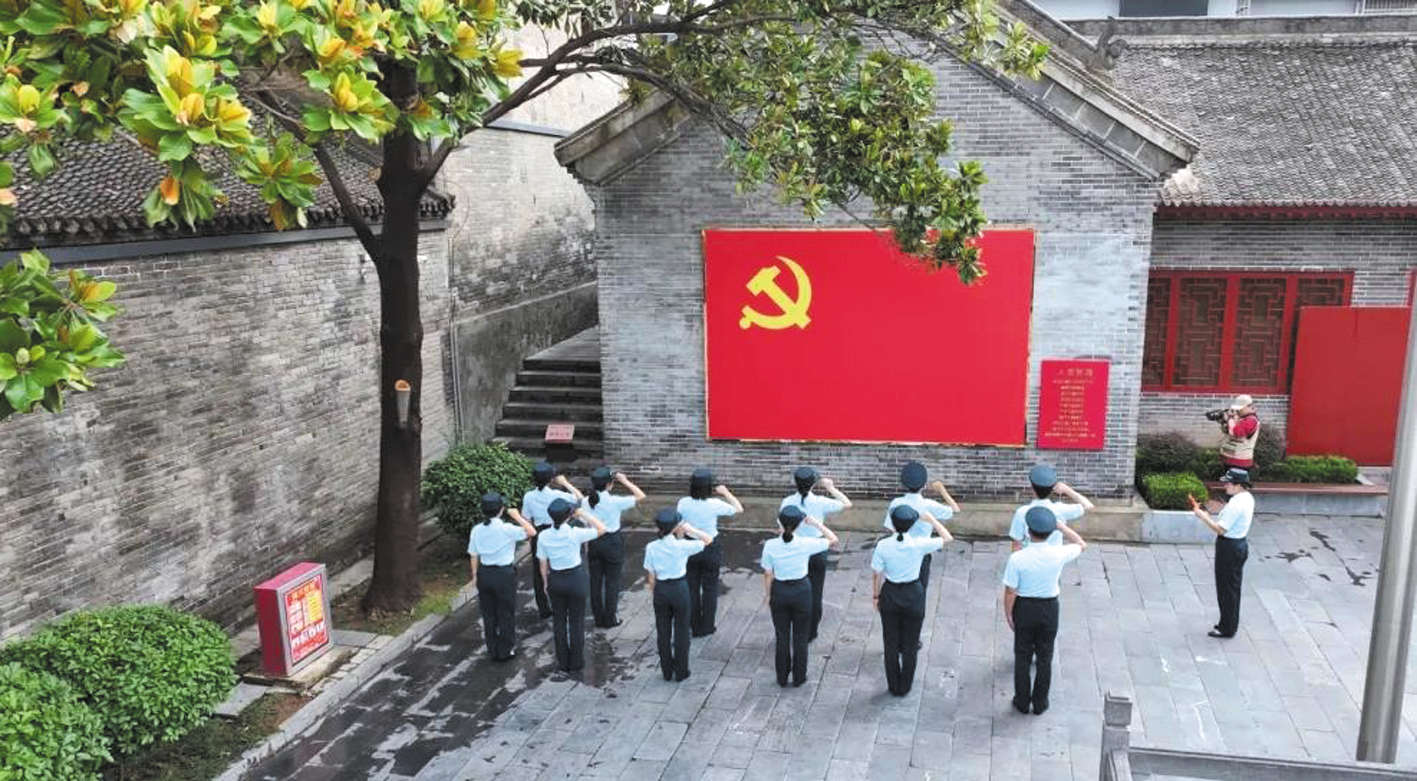 参观者重温入党誓词