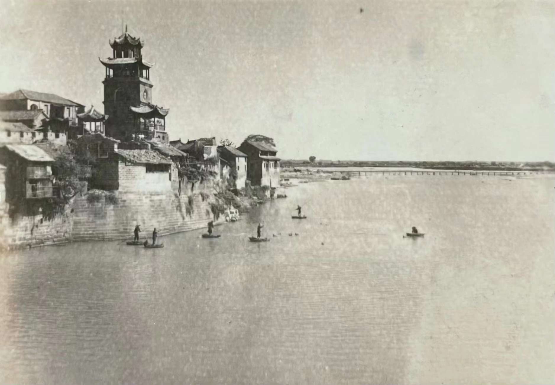 日军轰炸后的小潢河北岸望河楼废墟