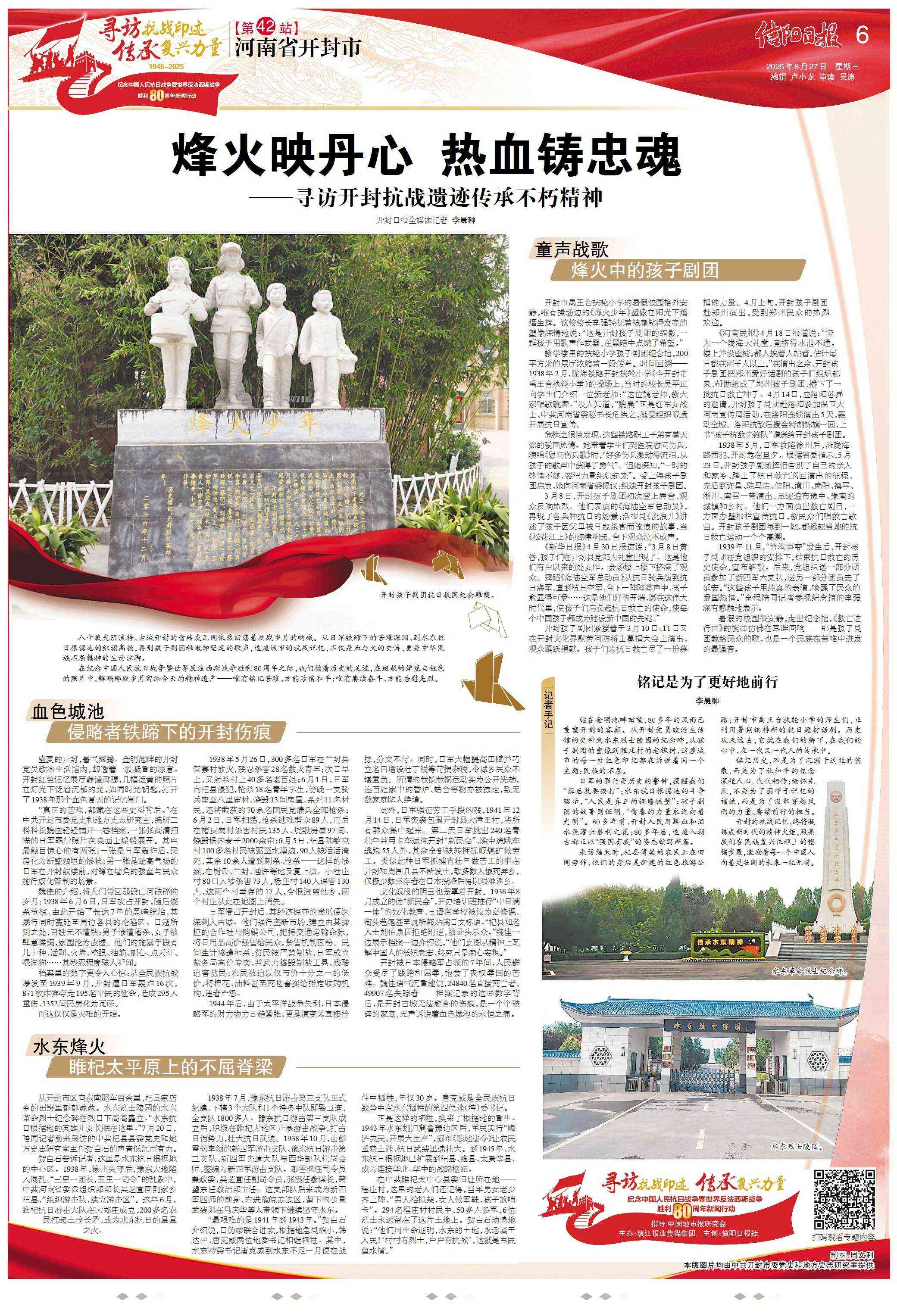采访结束时,杞县傅集的农民正在田间劳作,他们的身后是新建的红色旅游公路;开封市禹王台扶轮小学的师生们,正利用暑期编排新的抗日题材话剧。历史从未远去,它就在我们的脚下,在我们的心中,在一代又一代人的传承中。