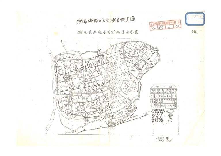 1940年衢州市区鼠疫暴发地点的示意图。资料图片