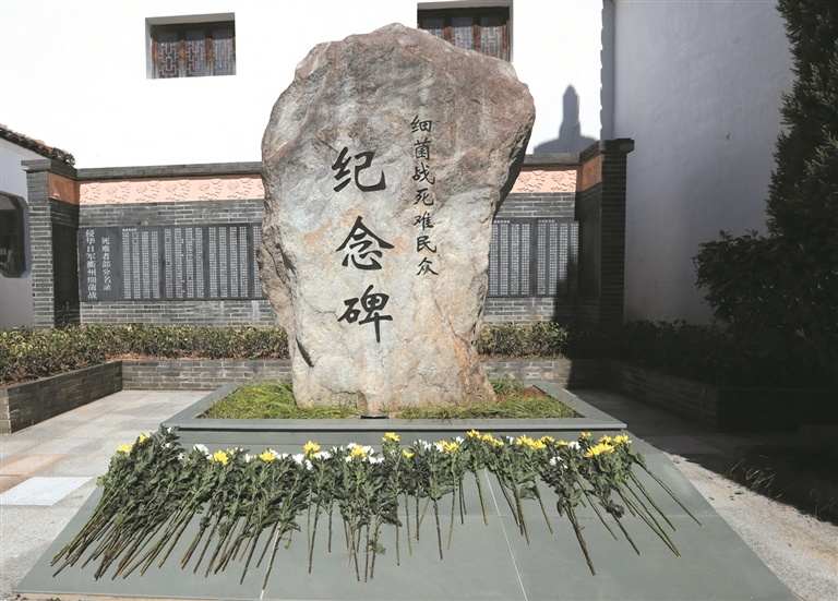 侵华日军衢州细菌战陈列馆是首批国家级抗战遗址,图为馆内矗立的细菌战死难民众纪念碑。韩强 摄