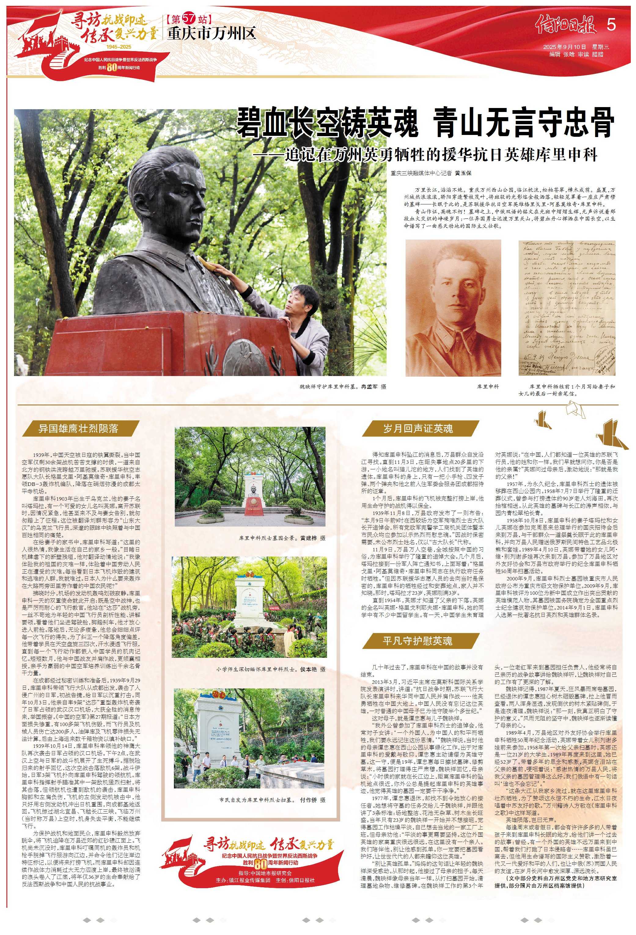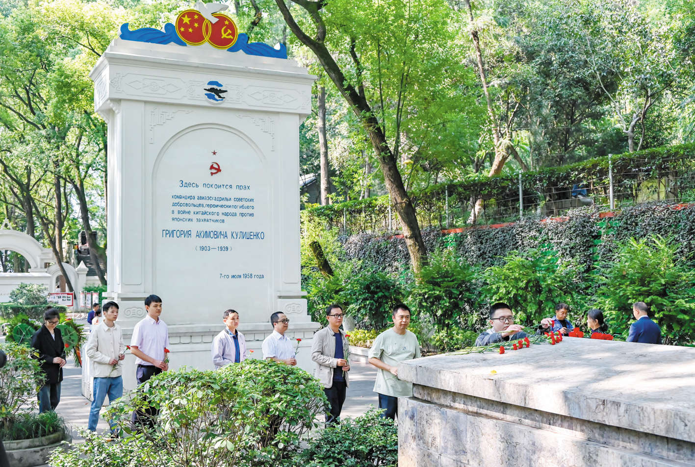 万里长江,滔滔不绝。重庆万州西山公园,临江枕流,松柏苍翠,樟木成荫。盛夏,万州城热浪滚滚,骄阳穿透繁枝茂叶,将斑驳的光影熔金般洒落,轻轻笼罩着一座庄严肃穆的墓碑——长眠于此的,是苏联援华抗日空军英雄格里戈里·阿基莫维奇·库里申科。