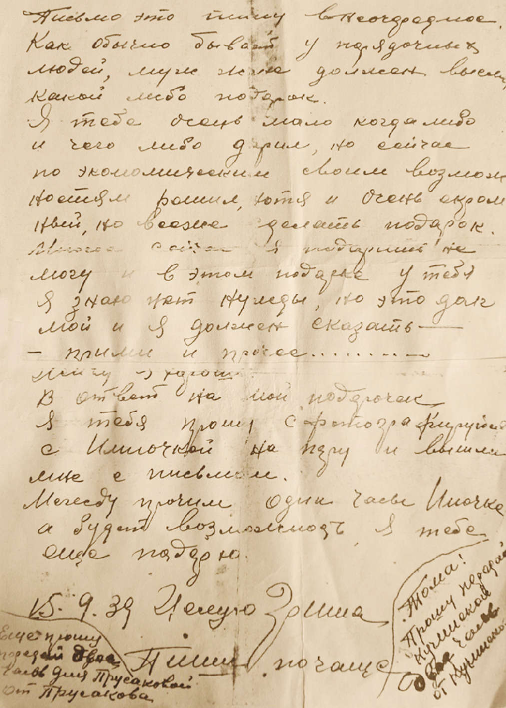 库里申科牺牲前1个月写给妻子和女儿的最后一封亲笔信。