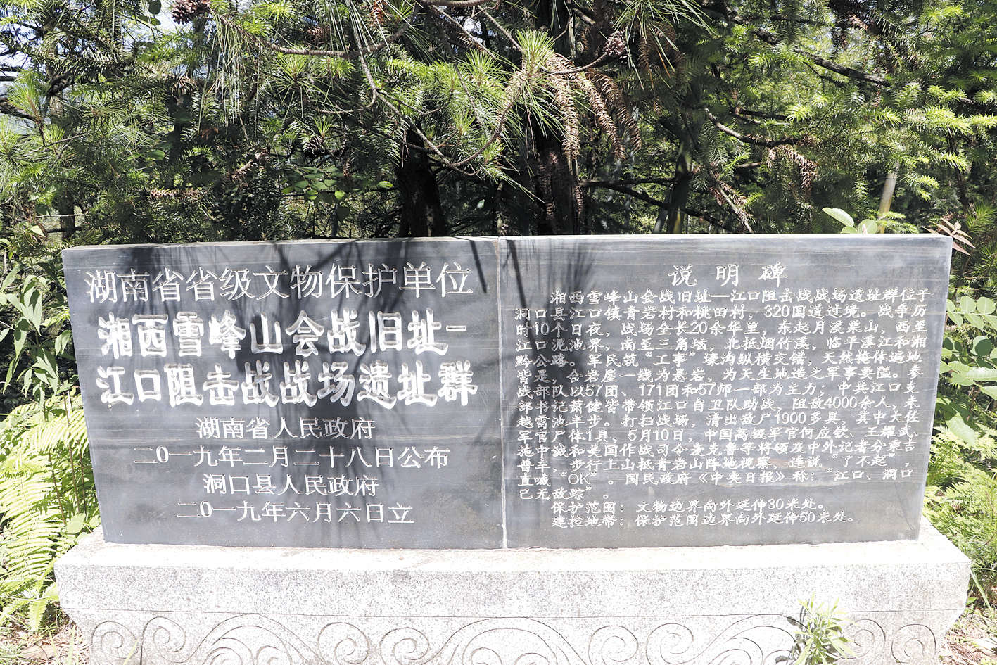 江口阻击战前线战场遗址说明碑。蒋玲慧 摄