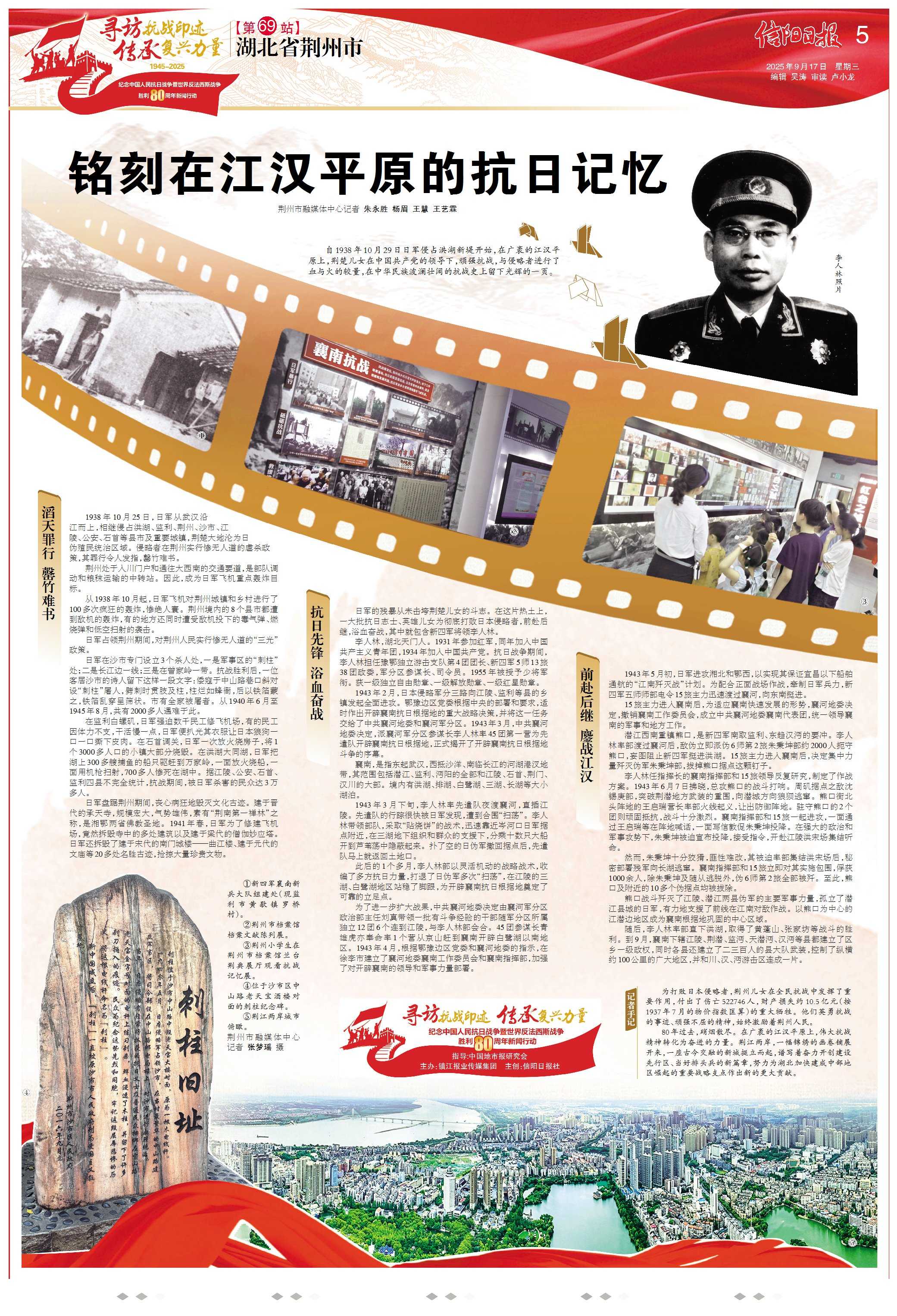 80年过去,硝烟散尽。在广袤的江汉平原上,伟大抗战精神转化为奋进的力量。荆江两岸,一幅锦绣的画卷铺展开来,一座古今交融的新城挺立而起,谱写着奋力开创建设先行区、当好排头兵的新篇章,努力为湖北加快建成中部地区崛起的重要战略支点作出新的更大贡献。