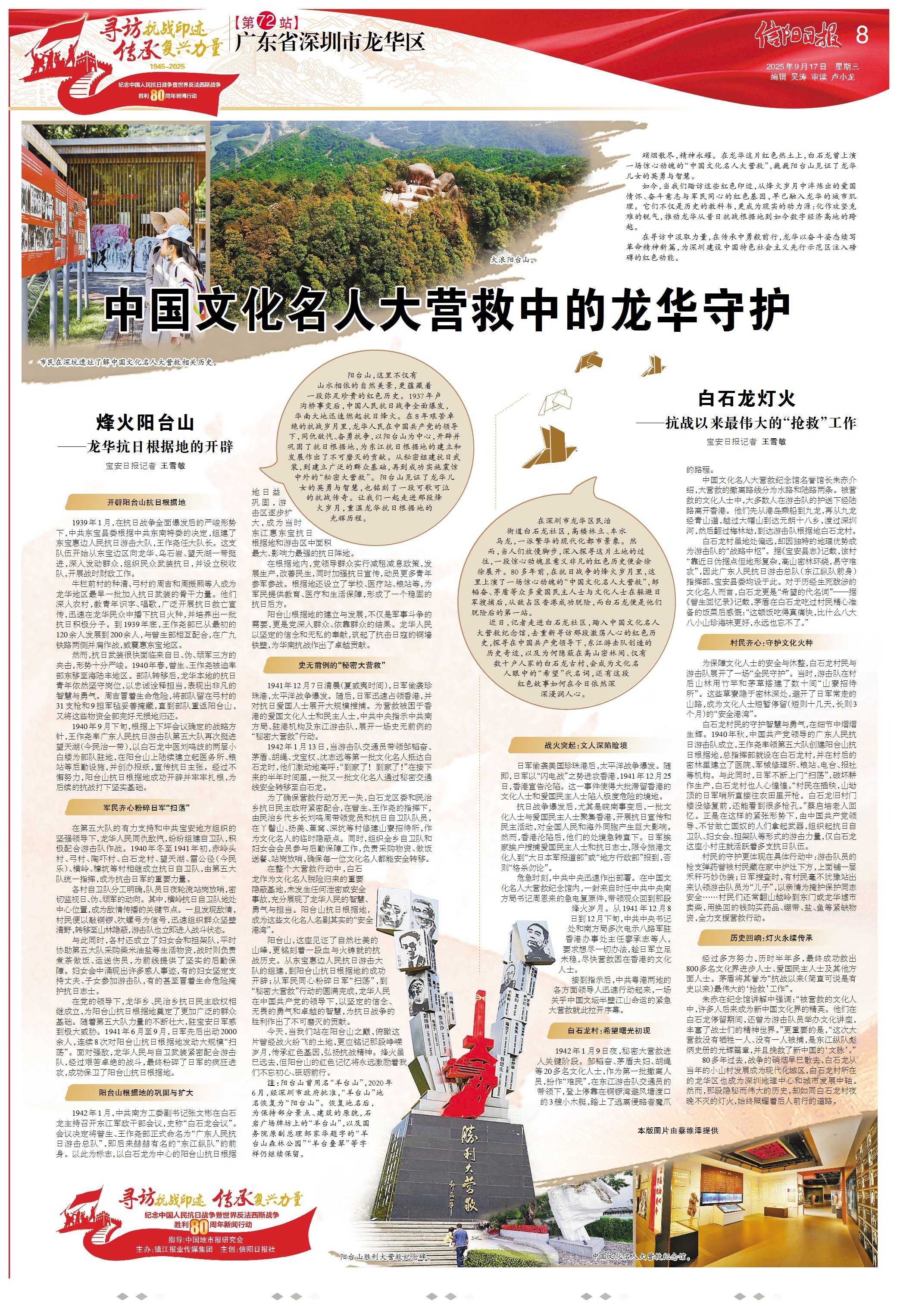 如今,当我们踏访这些红色印迹,从烽火岁月中淬炼出的爱国情怀、奋斗意志与军民同心的红色基因,早已融入龙华的城市肌理。它们不仅是历史的教科书,更成为现实的动力源:化作攻坚克难的锐气,推动龙华从昔日抗战根据地到如今数字经济高地的跨越。