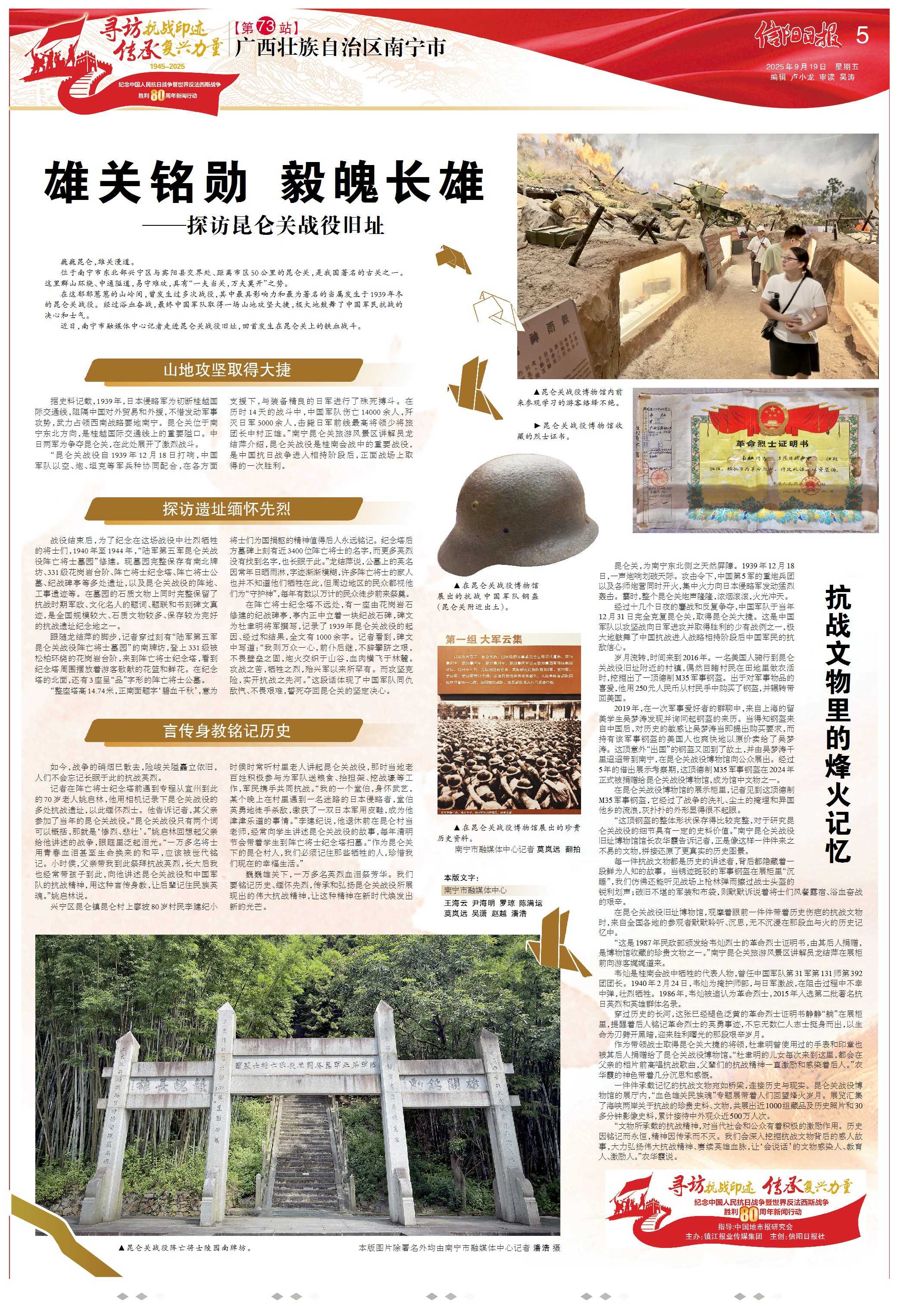 一件件承载记忆的抗战文物宛如桥梁,连接历史与现实。昆仑关战役博物馆的展厅内,“血色雄关民族魂”专题展带着人们回望烽火岁月。展览汇集了海峡两岸关于抗战的珍贵史料、文物,共展出近1000组藏品及历史照片和30多分钟影像史料,累计接待中外观众近500万人次。